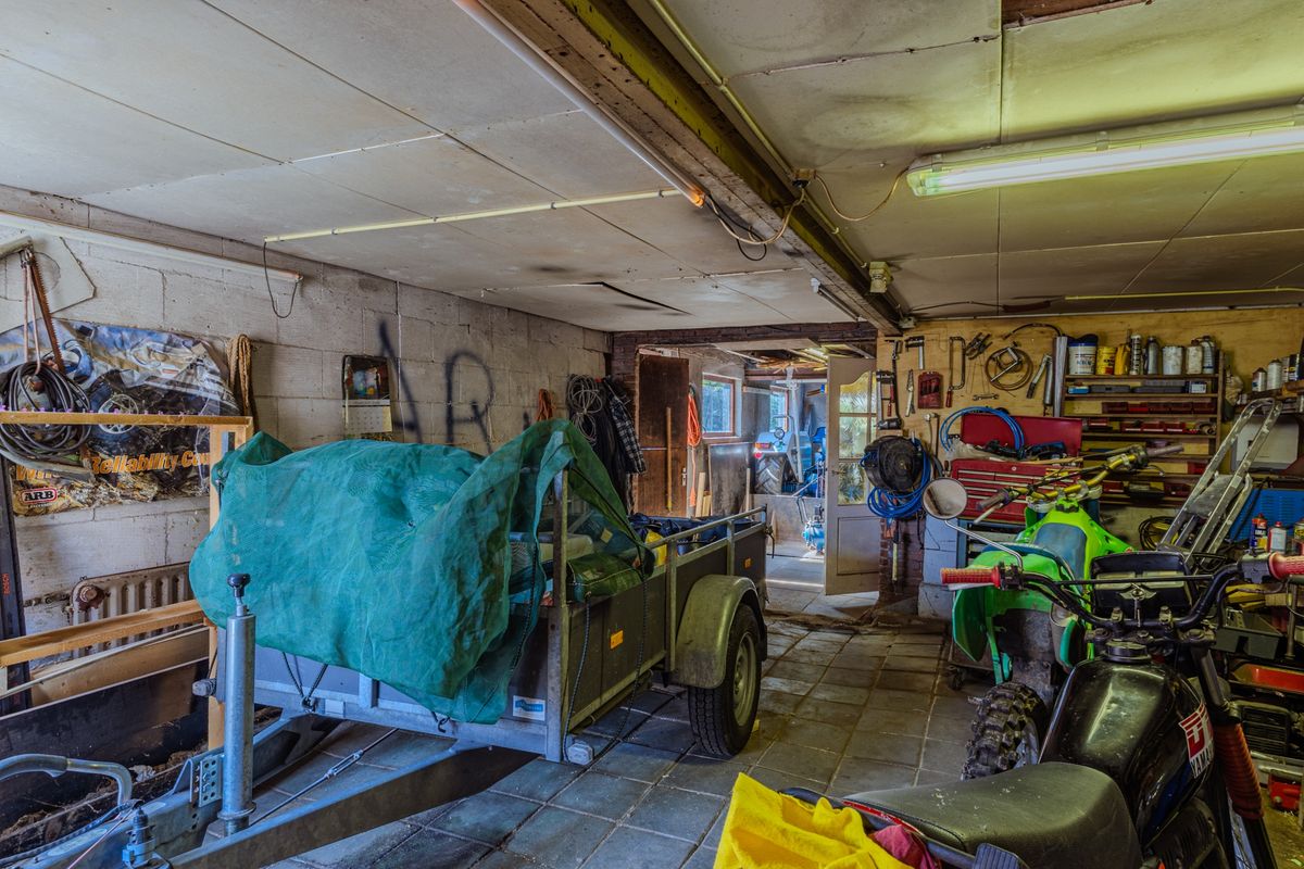 De voorste inpandig bereikbare berging meet circa 6,00 bij 4,80 meter. Deze berging staat in open verbinding met de achtergelegen berging die circa 7,50 bij 4,80 meter meet. Het is mogelijk hier meerdere voertuigen te parkeren.