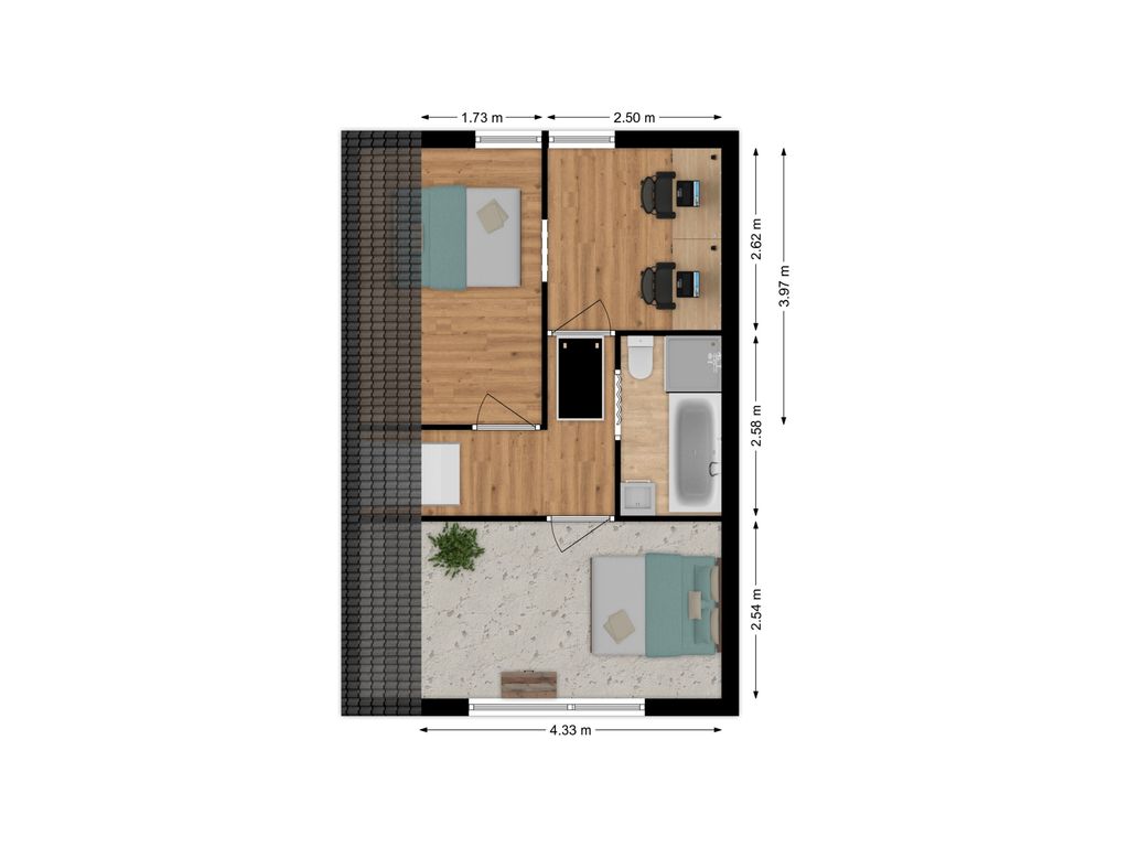 De bergzolder is te bereiken middels een vlizotrap en bestrijkt de volledige lengte van de woning. De nokhoogte bedraagt hier circa 1,75 meter.