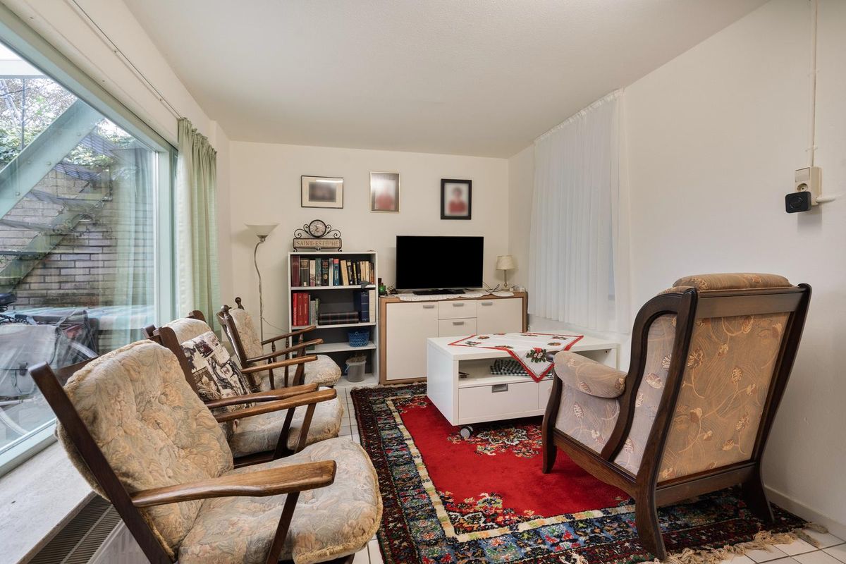 Een tweede woonkamer, keuken en eetkamer met toegang tot een ruim balkon en trap naar de tuin. Tevens bevindt zich hier een badkamer.