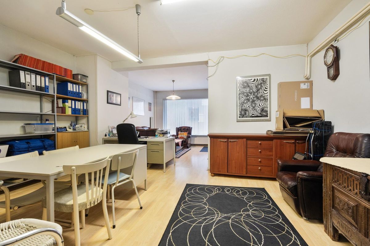 Ruime woonkamer met veel daglicht. Daarnaast een kantoorruimte (eventueel te verwijderen voor extra woonruimte), een woonkeuken, wc en douche. Achter de woning bevindt zich een tuin met overdekte zitplaats en extra opslagmogelijkheden.