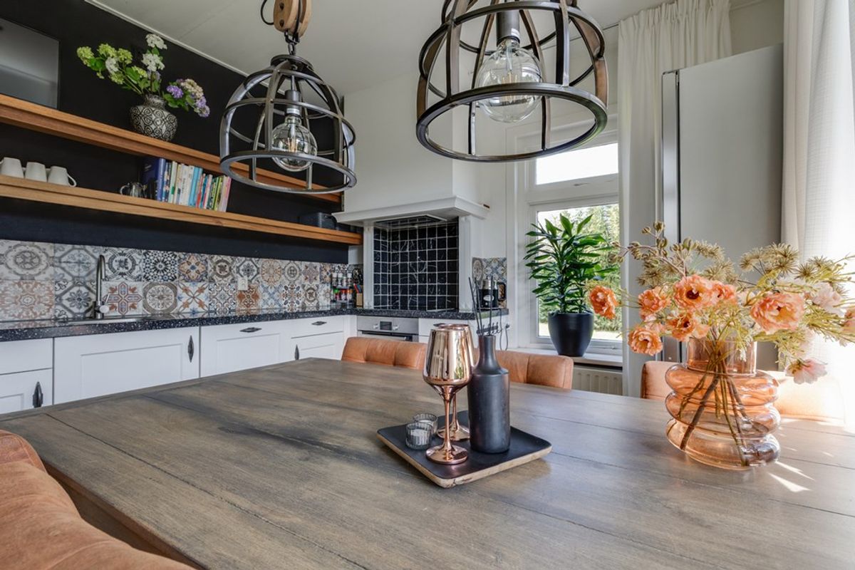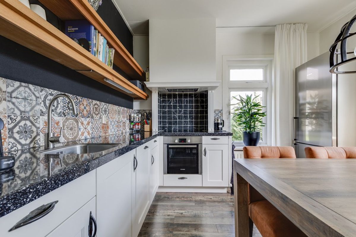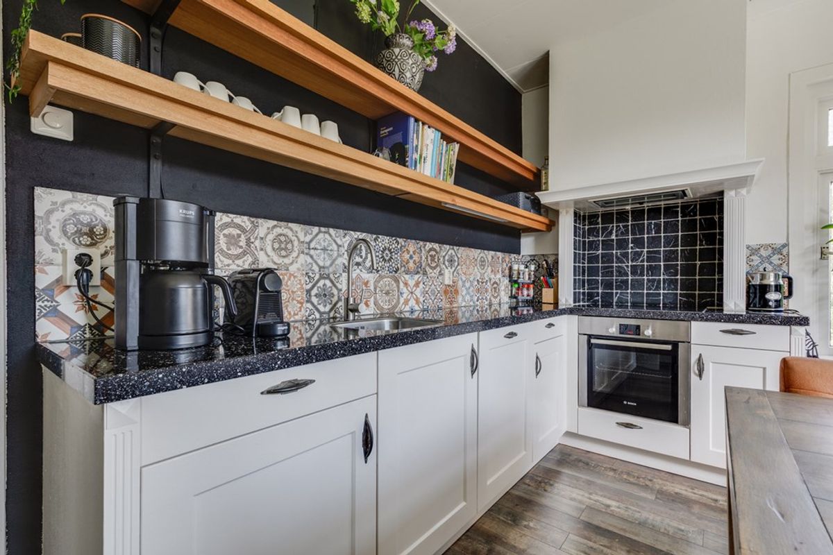 De keuken is functioneel én verrassend speels vormgegeven. De creatieve en kleurrijke uitstraling geeft deze ruimte een eigen karakter en maakt het tot een levendige plek in huis. De keuken is uitgerust met diverse inbouwapparatuur, waaronder een inductiekookplaat, oven, magnetron, vaatwasser en een koel-vriescombinatie. Daarnaast is er voldoende werk- en bergruimte aanwezig, waardoor koken hier zowel praktisch als prettig is.