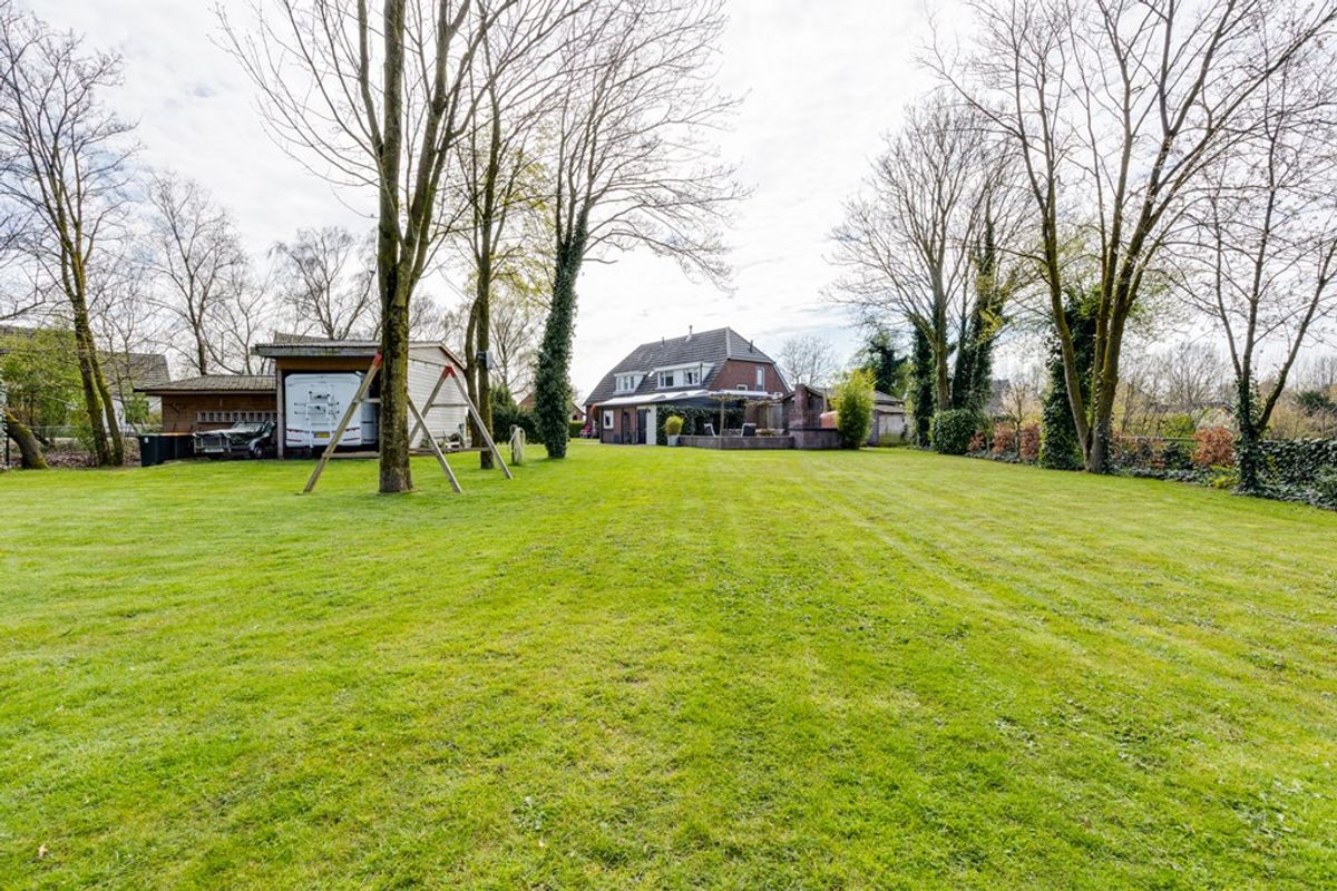 De achtertuin is maar liefst circa 90 meter diep en gelegen op het zuiden, waardoor u de hele dag kunt genieten van zon en privacy. Het royale perceel van 1.900 m² biedt talloze mogelijkheden voor tuinliefhebbers, gezinnen of het houden van dieren. De tuin is verzorgd aangelegd en biedt een fijne combinatie van groen, ruimte en rust.