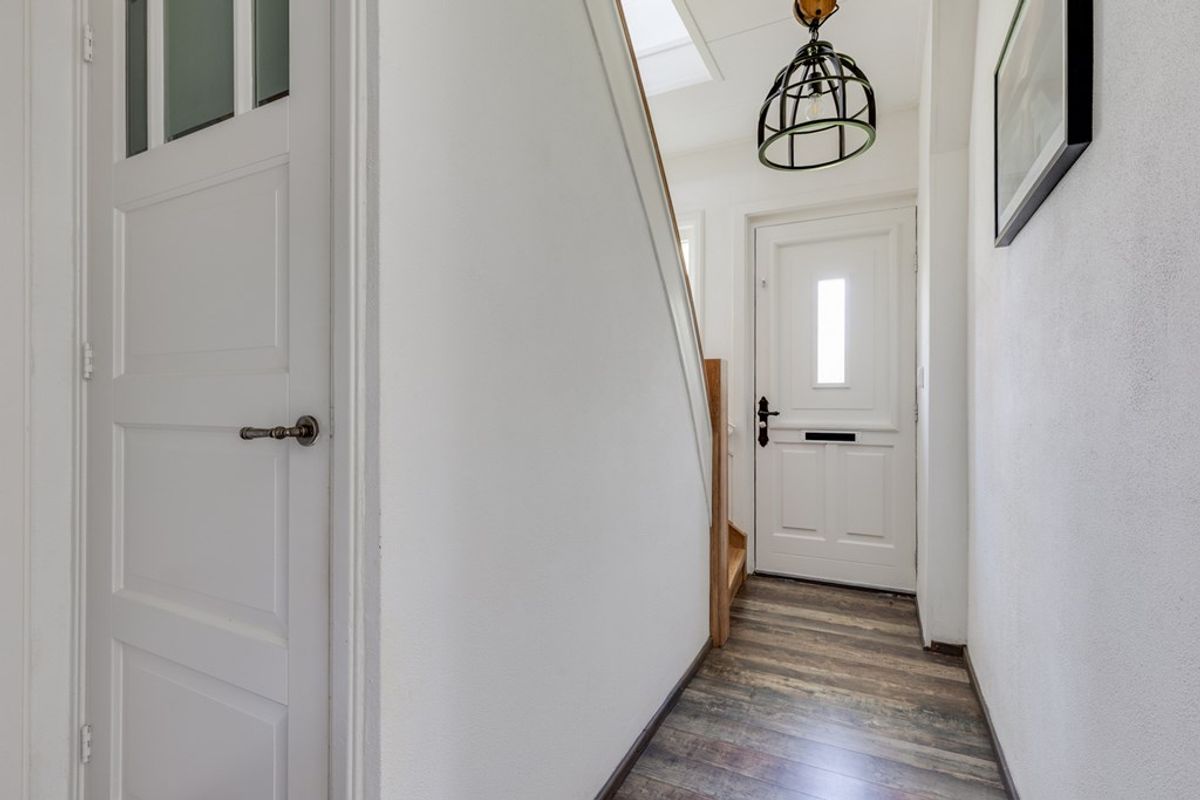 De tweede hal verbindt de begane grond met de eerste verdieping, de tuin, het tweede toilet en de badkamer. Ook geeft deze hal toegang tot de eetkamer, die in open verbinding staat met de woonkamer, waardoor een logische en prettige looproute ontstaat tussen de leefruimtes.