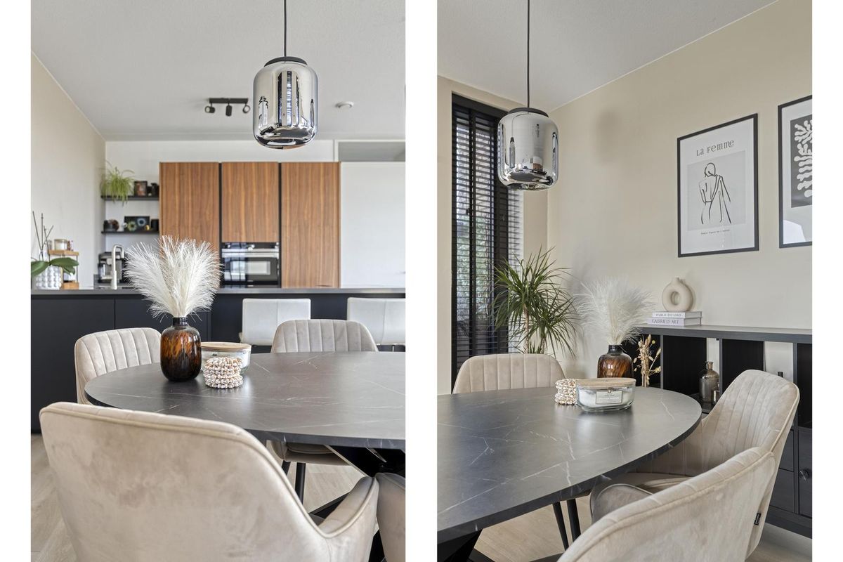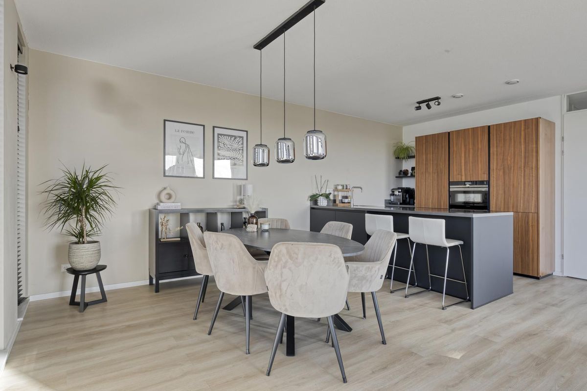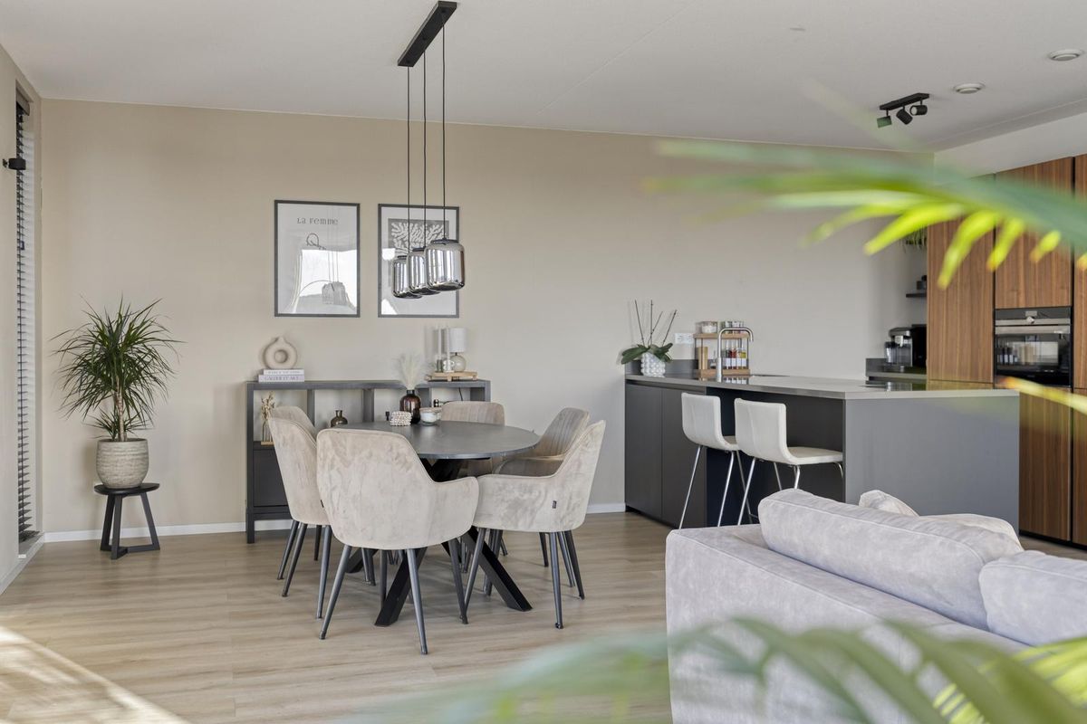 De moderne open keuken is een echte blikvanger. Het ruime kookeiland met inductiekookplaat en geïntegreerde afzuiging vormt het middelpunt van de leefruimte – ideaal voor gezellige etentjes of een goed glas wijn tijdens het koken. De keuken is verder uitgerust met een vaatwasser en een wandopstelling met koelkast, vriezer, combi-magnetron en een handig plateau voor het koffiezetapparaat. Alles wat je nodig hebt om comfortabel te leven én te genieten.
