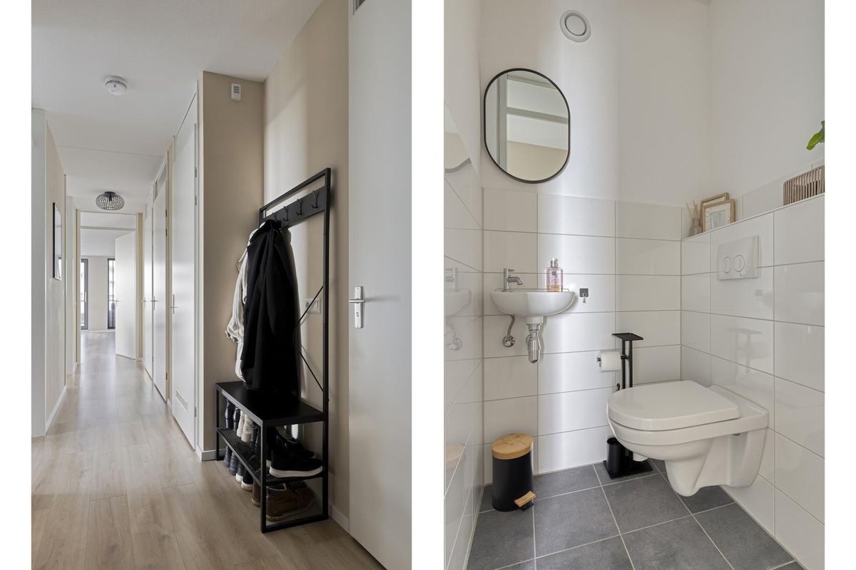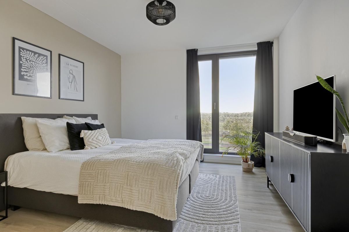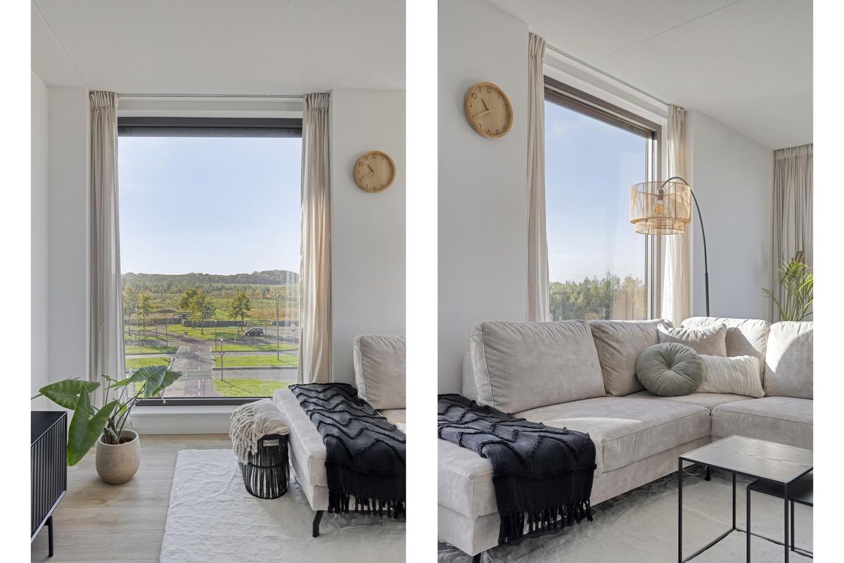 Zodra je het appartement binnenstapt, voel je de ruimte en de moderne afwerking. De ruime hal biedt toegang naar twee volwaardige slaapkamers, meterkast, toiletruimte, badkamer en de woonkamer. De royale woonkamer met grote raampartijen op het zuidwesten zorgt voor een zee aan daglicht en een prachtig vrij uitzicht. Dankzij de vloerverwarming in combinatie met een modern ventilatiesysteem geniet je hier het hele jaar door van een aangenaam binnenklimaat – energiezuinig en comfortabel.