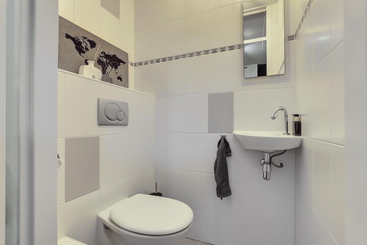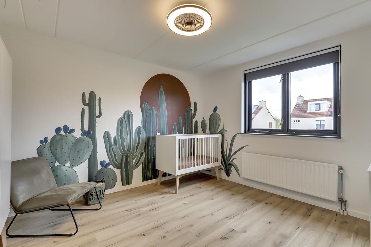 De tweede verdieping verrast met een royale derde slaapkamer met veel lichtinval. Ook hier valt de strakke doorgelegde laminaatvloer direct in het oog. De afwerking is verzorgd en de ruimte biedt voldoende plek voor een bed, bureau en kastruimte. Op de overloop vindt u de CV-installatie, wasmachine aansluiting en extra bergruimte, evenals een vaste kast. Deze verdieping leent zich uitstekend als slaapkamer, logeerkamer of thuiskantoor.