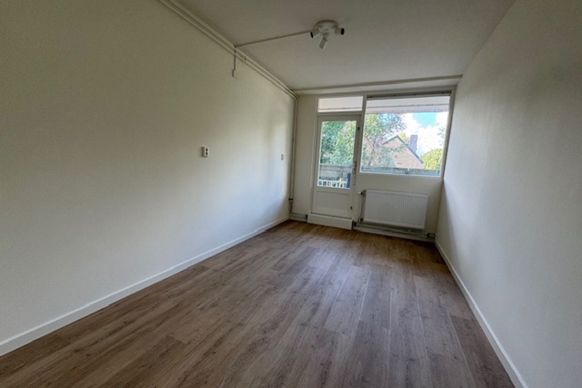 Ruime vier-kamer maisonnette met parkeerplaats, ruime woonkamer/keuken/eetgedeelte, grote tuin en balkon, slaapverdieping met drie slaapkamers (waarvan eentje met balkon) en een badkamer.