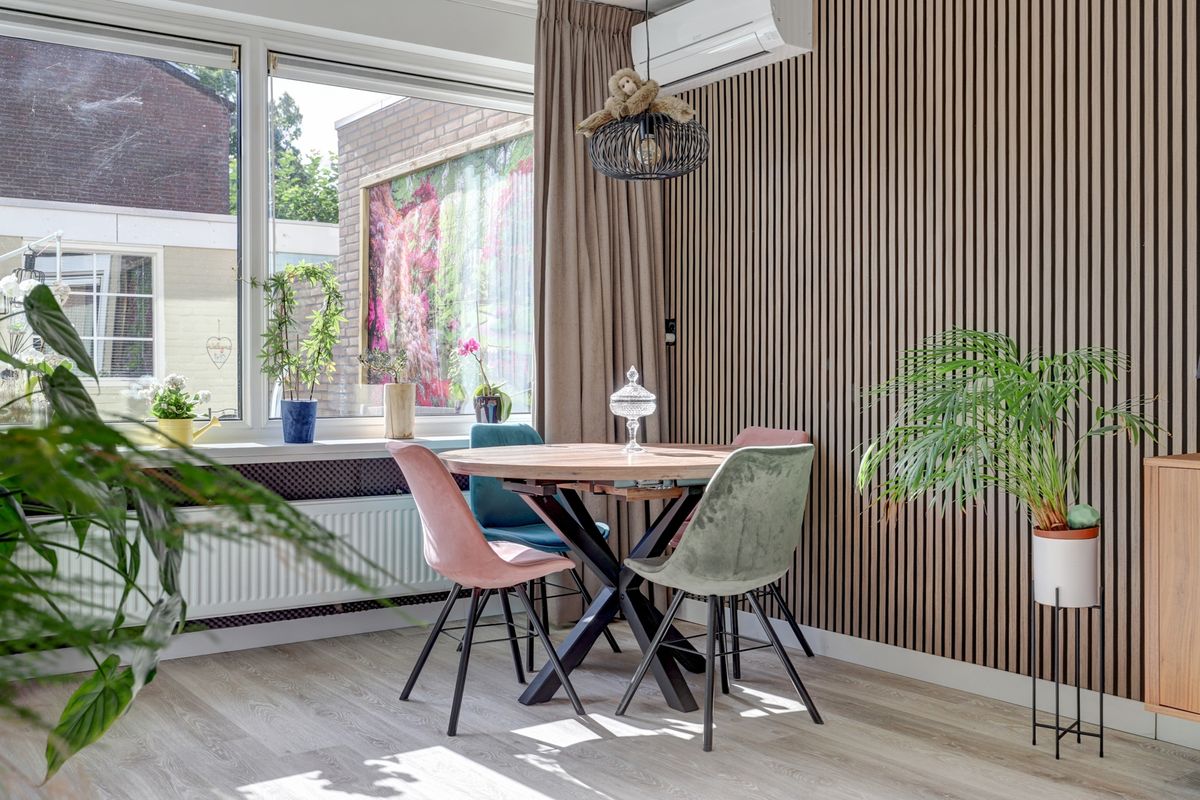 De woning is slim en smaakvol uitgebreid, met aan de zijkant een aanbouw die zorgt voor extra leefruimte. In deze aanbouw is een extra zitruimte gecreëerd, die naadloos aansluit op de keuken. Ook is er een praktische kantoorruimte gemaakt, ideaal voor thuiswerken of als speelkamer voor de kinderen. De keuken is in 2021 vernieuwd en van alle gemakken voorzien.