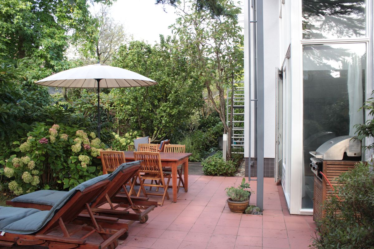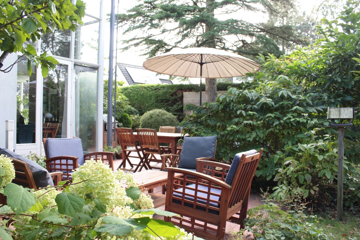 The garden offers many possibilities, runs around the house, has various seating areas in sun or shade throughout the day and offers a lot of privacy. Pure enjoyment. You can park your car on your own plot.