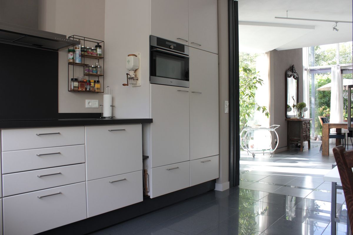 De keuken kan zowel afgesloten worden van de woonkamer of met geopende deuren onderdeel zijn van de woonkamer, net wat de voorkeur heeft. De keuken is van prima formaat, licht en uitgerust met koelkast/vriezer, vaatwasser, combi/oven, inductie kookplaat met afzuigkap en meer dan voldoende kastruimte.