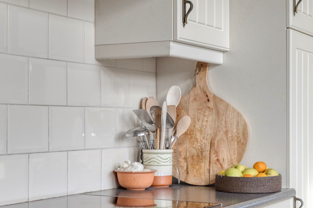 De keuken, geplaatst in 2001, is praktisch ingericht en voorzien van een inductiekookplaat en recent vernieuwde Siemens oven en vaatwasser. Er is destijds een schuifdeur geplaatst om de keuken desgewenst van de woonkamer te kunnen scheiden, ideaal voor wie houdt van rust tijdens het koken.