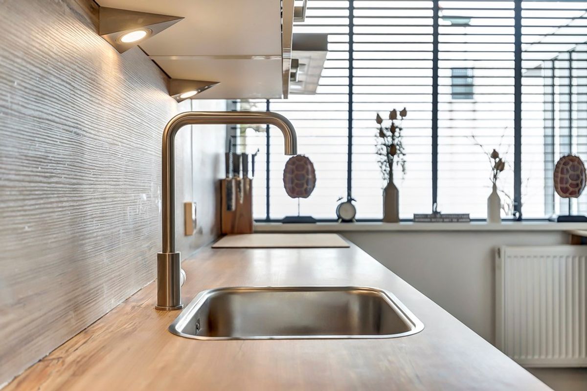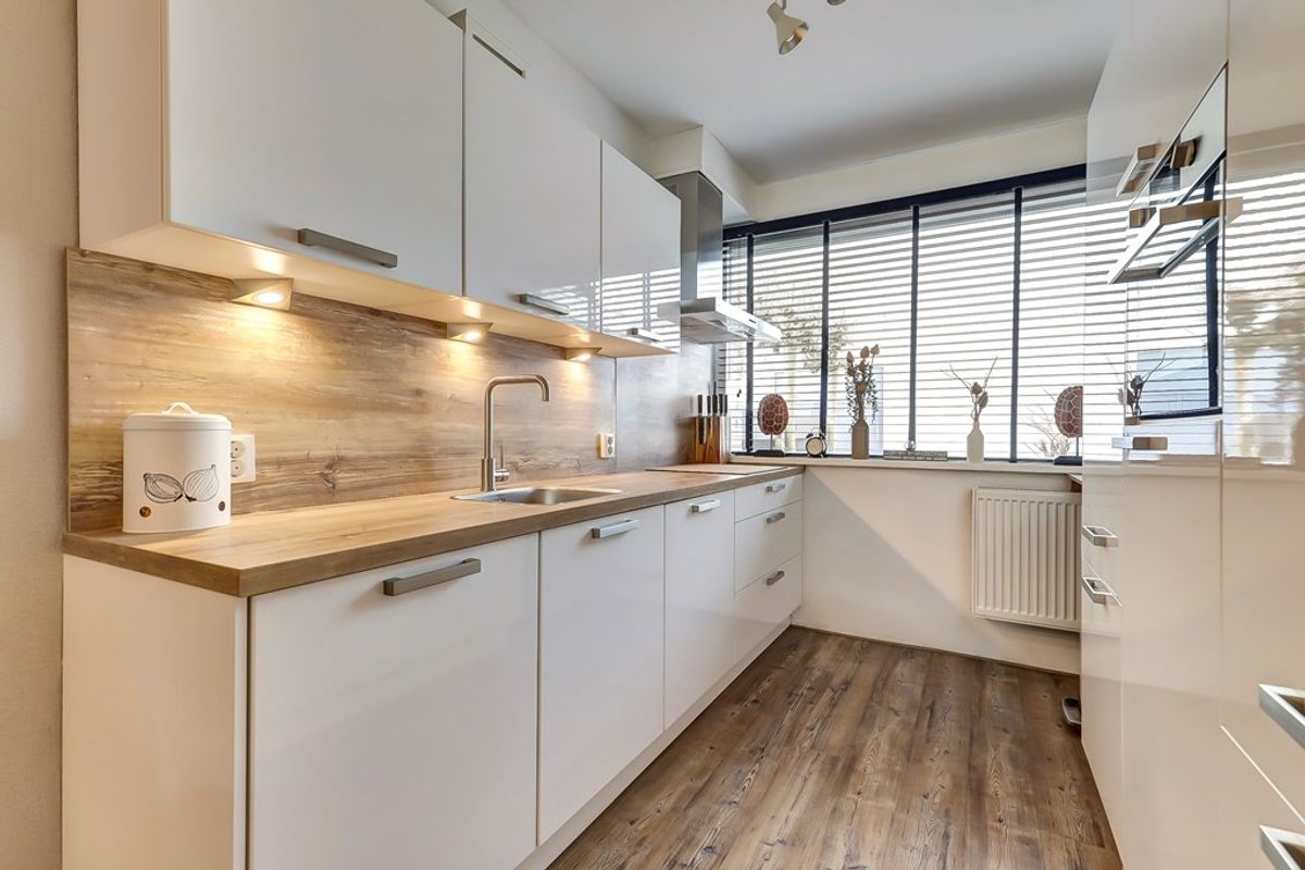 De open keuken bevindt zich aan de voorzijde van de woning en is uitgevoerd met een moderne inbouwkeuken (2020) in wandopstelling. De keuken is compleet uitgerust met een spoelbak, inductiekookplaat, afzuigkap, combi-oven, koelkast en vaatwasser.