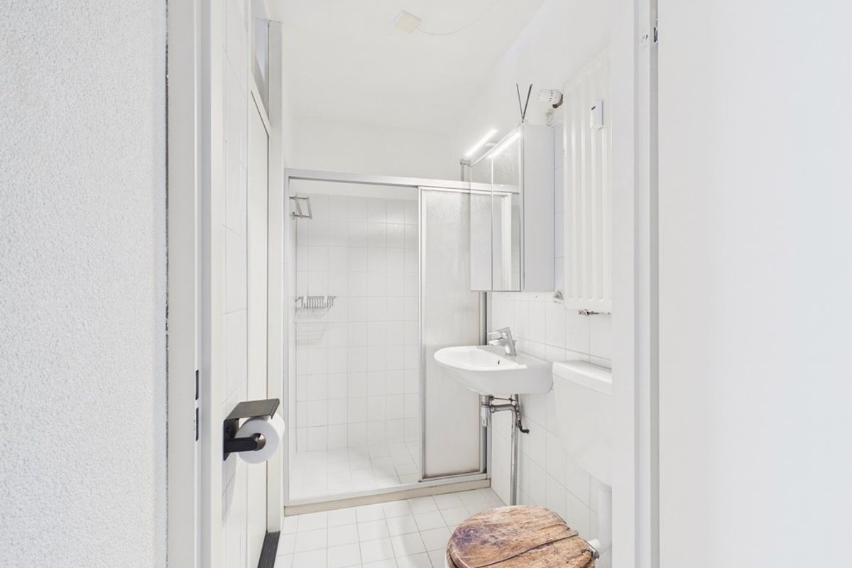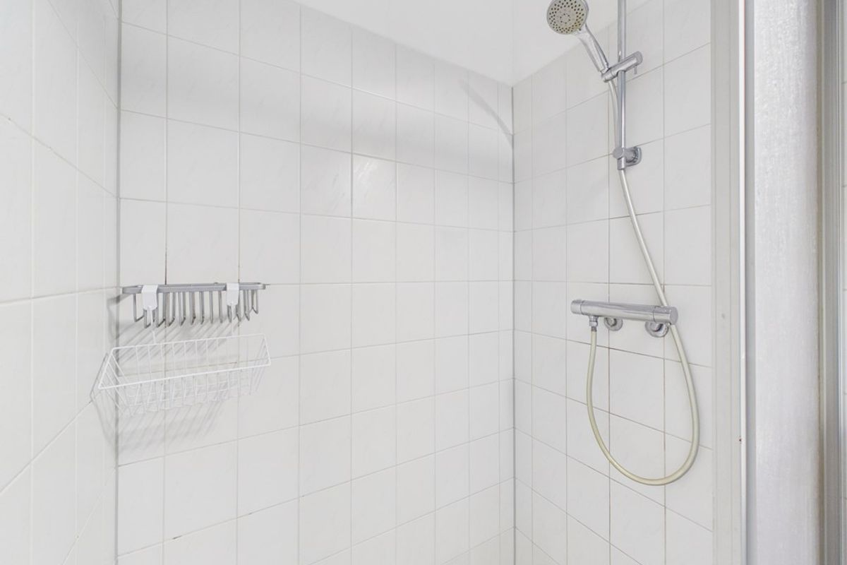 Op de derde verdieping komt u binnen in de hal met meterkast en toegang tot de inpandige berging/bijkeuken, waar zich de boileropstelling bevindt en aansluitingen voor wasmachine en droger aanwezig zijn. De badkamer is netjes uitgevoerd en voorzien van een toilet, douche en wastafel. Ook vanuit de slaapkamer is toegang tot deze badkamer.