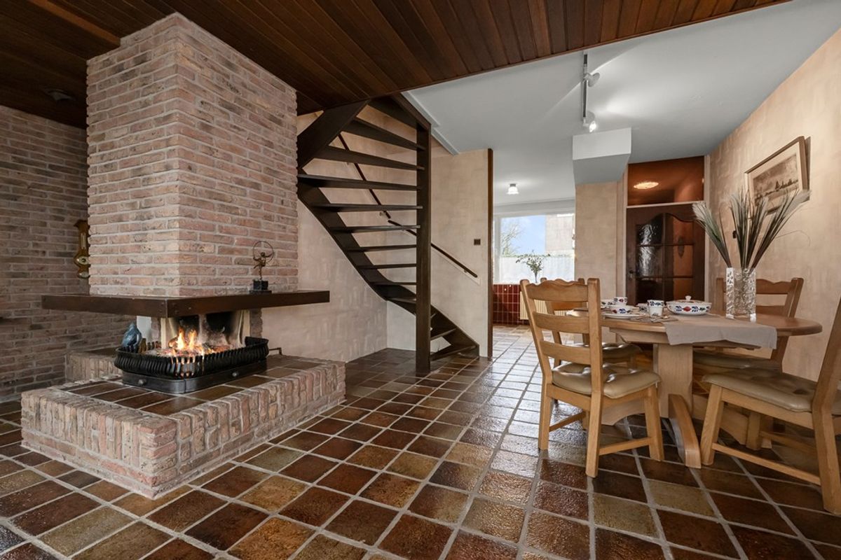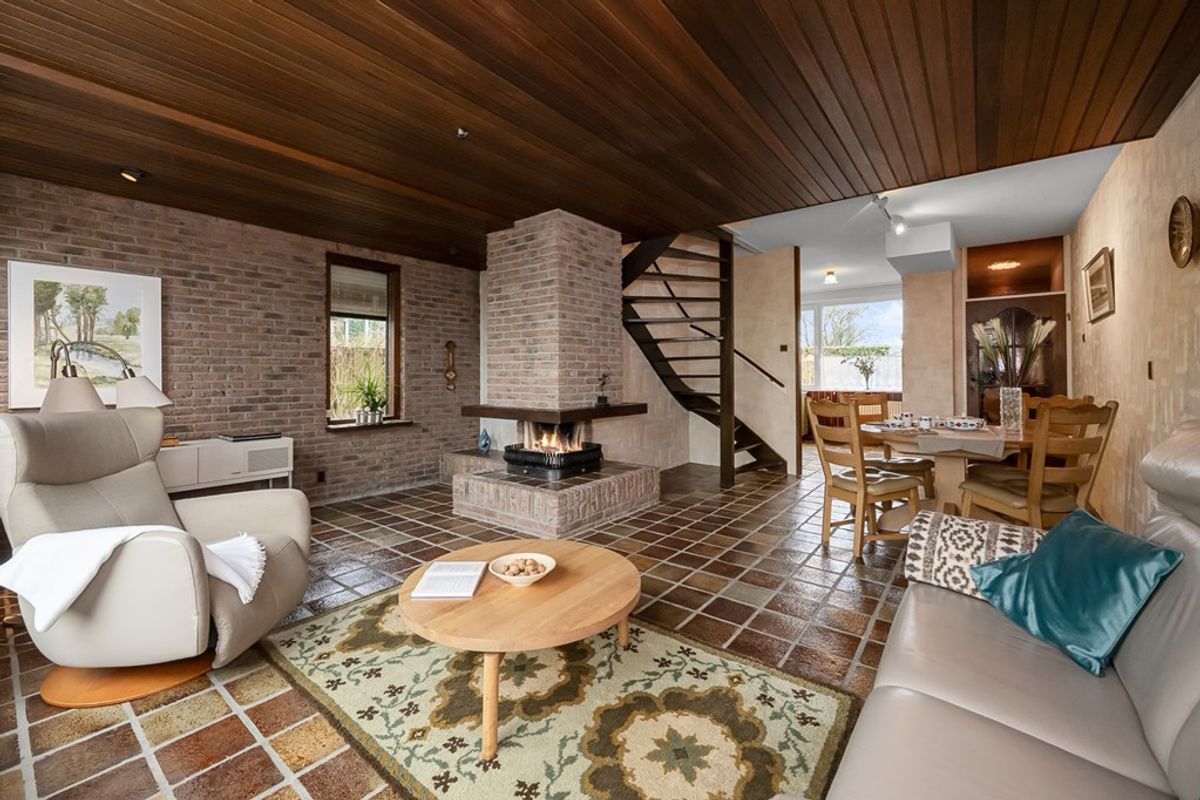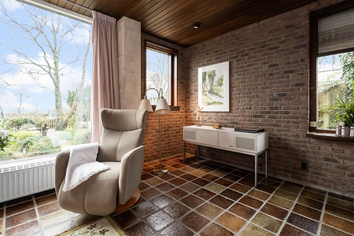 Via de entree kom je in de hal met toilet en garderoberuimte. Vanuit hier loop je door naar de woonkamer. De woonkamer is ruim opgezet en voorzien van een plavuizenvloer en een open haard, wat zorgt voor een gezellige sfeer. Grote ramen bieden veel lichtinval én een prachtig uitzicht op de tuin en de polder.