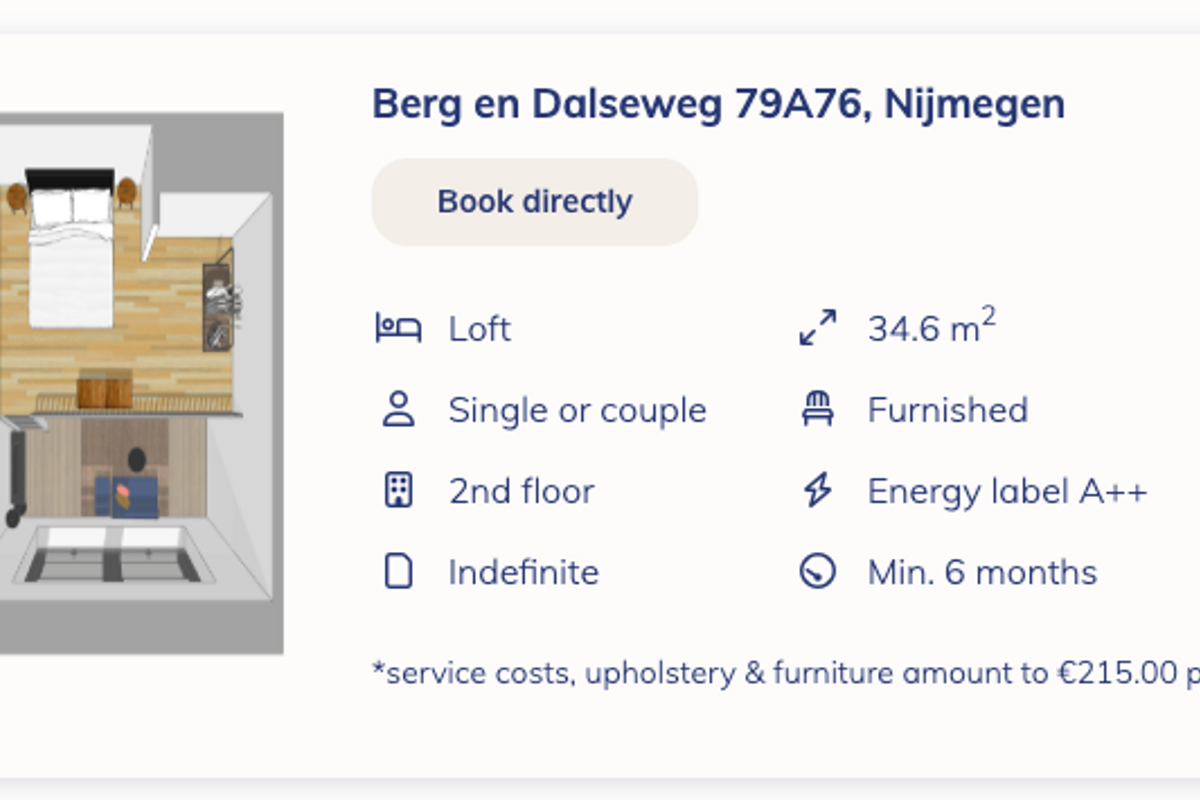 Berg en Dalseweg 79A76 from 05-11-25 / basic rent: € 1211