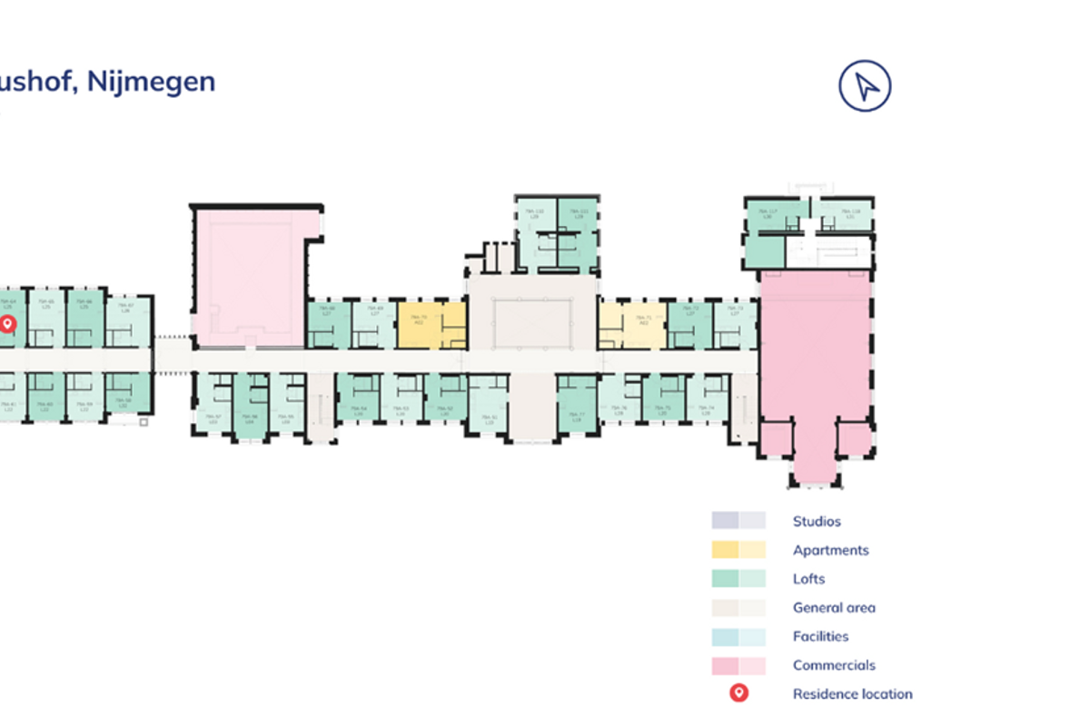 Canisiushof is located in the heart of Hunnerberg, a charming and characteristic neighborhood in Nijmegen Oost. The city center of Nijmegen can be reached in just 5 minutes by bike.