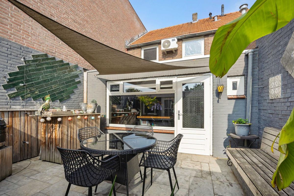 Grenzend aan de keuken vindt je een sfeervolle stadstuin waar je fijn buiten kunt zitten. De vrijstaande berging biedt extra ruimte voor opslag.