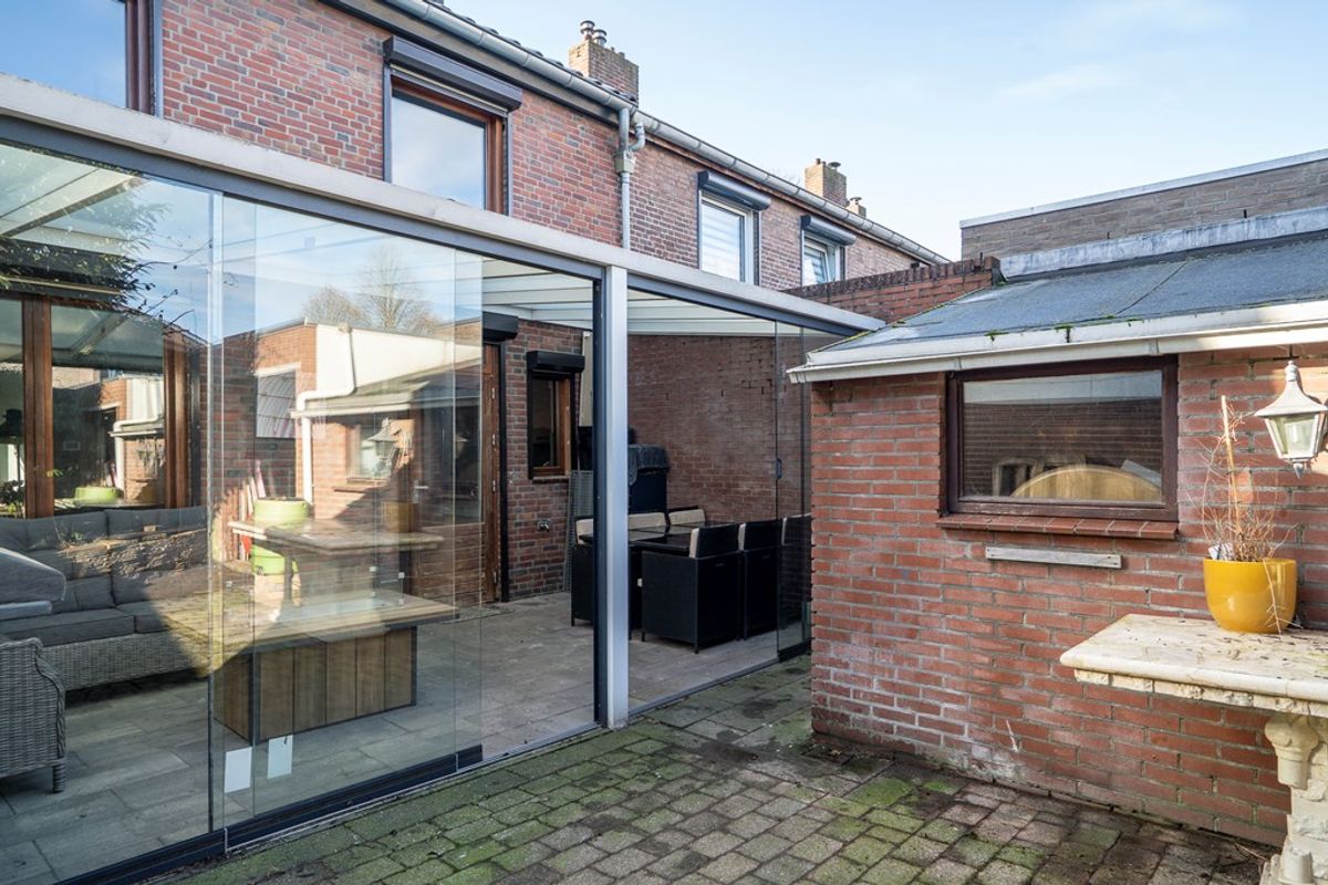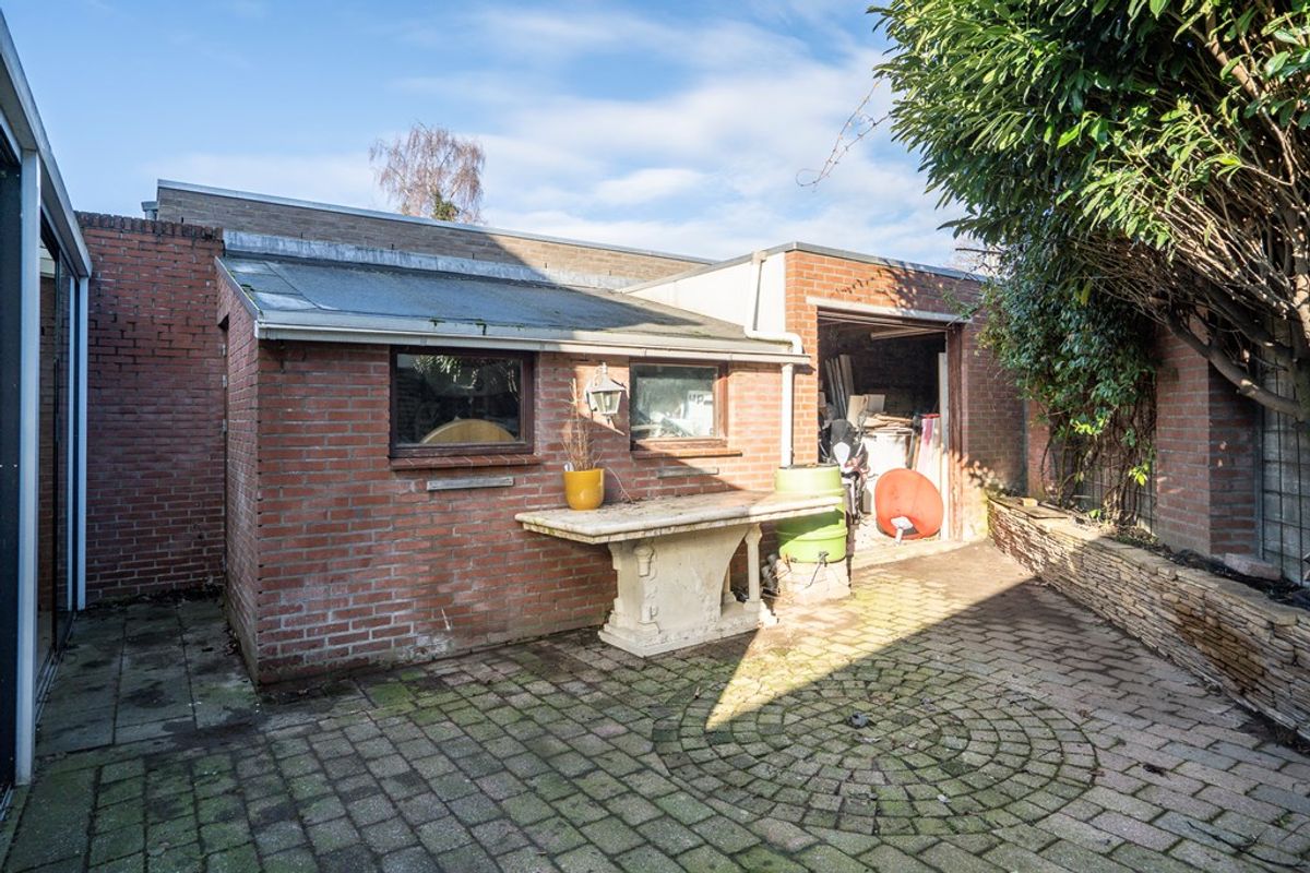 De onderhoudsvriendelijke tuin is ook bereikbaar via een poort naast de oprit en beschikt over een praktische berging voor fietsen en tuingereedschap.