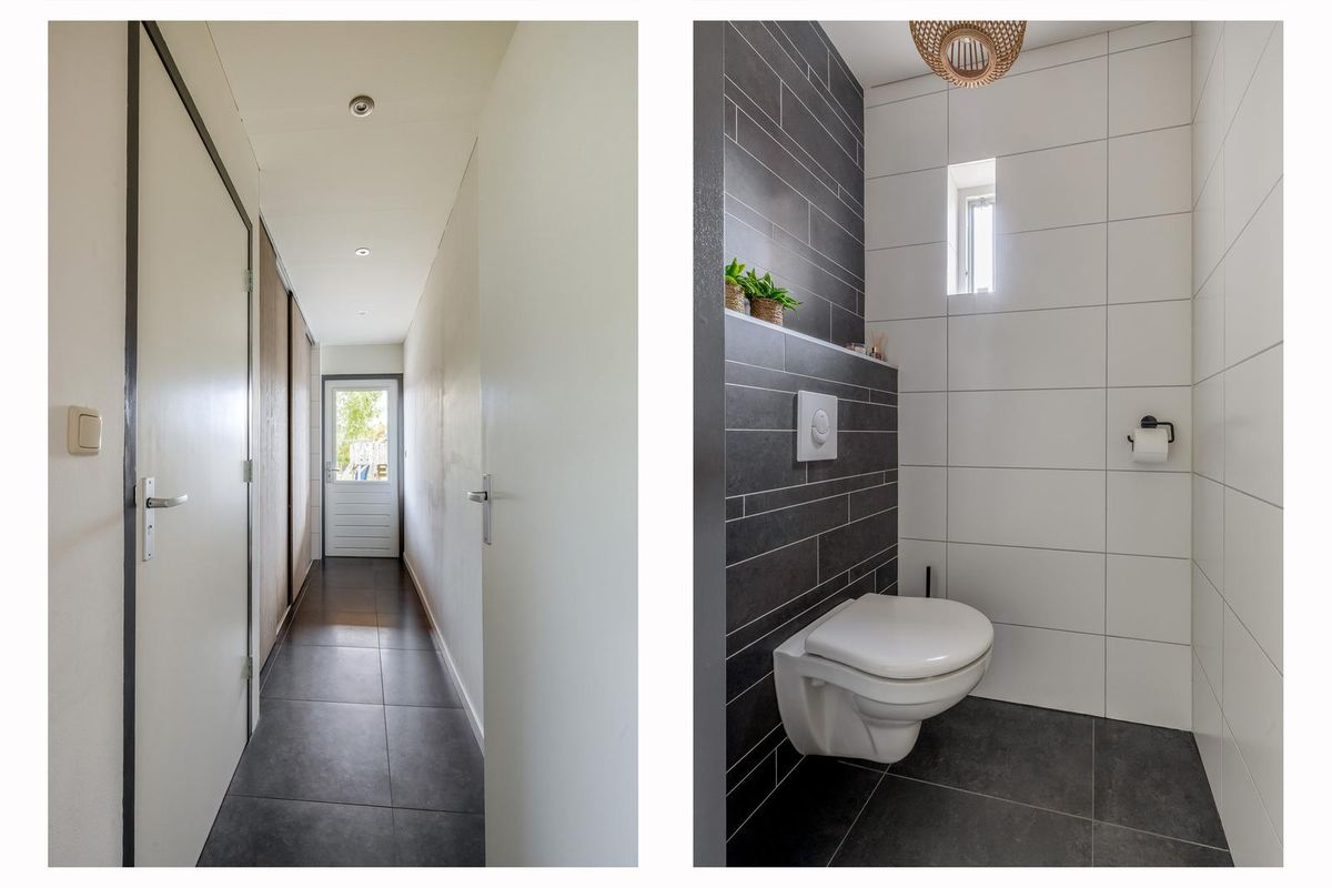 In de bijkeuken is het toilet aanwezig. De grote vaste kast met schuifdeuren is voorzien van de aansluitingen voor het witgoed en cv-ketel. Een loopdeur biedt toegang tot de tuin.