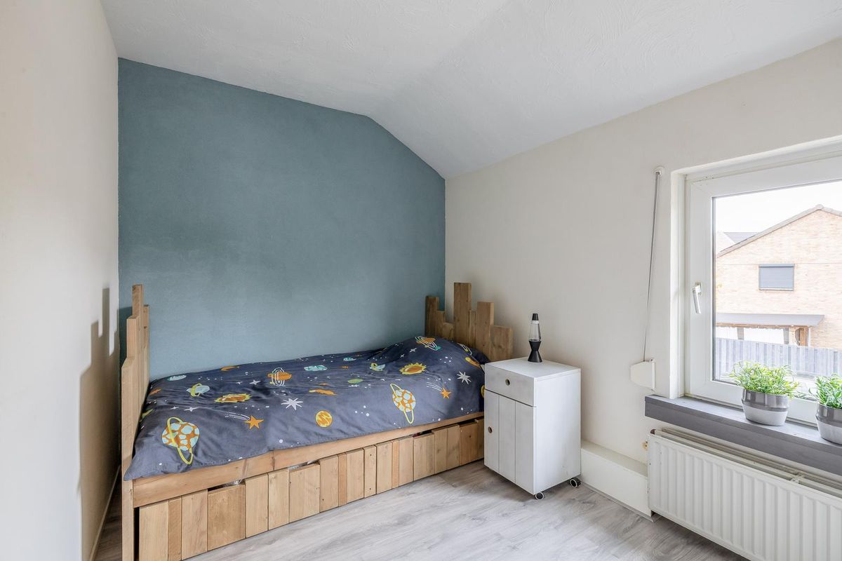 De slaapkamer aan de achterzijde is voorzien van een grote muurkast. Twee slapakamers zijn voorzien van rolluiken.