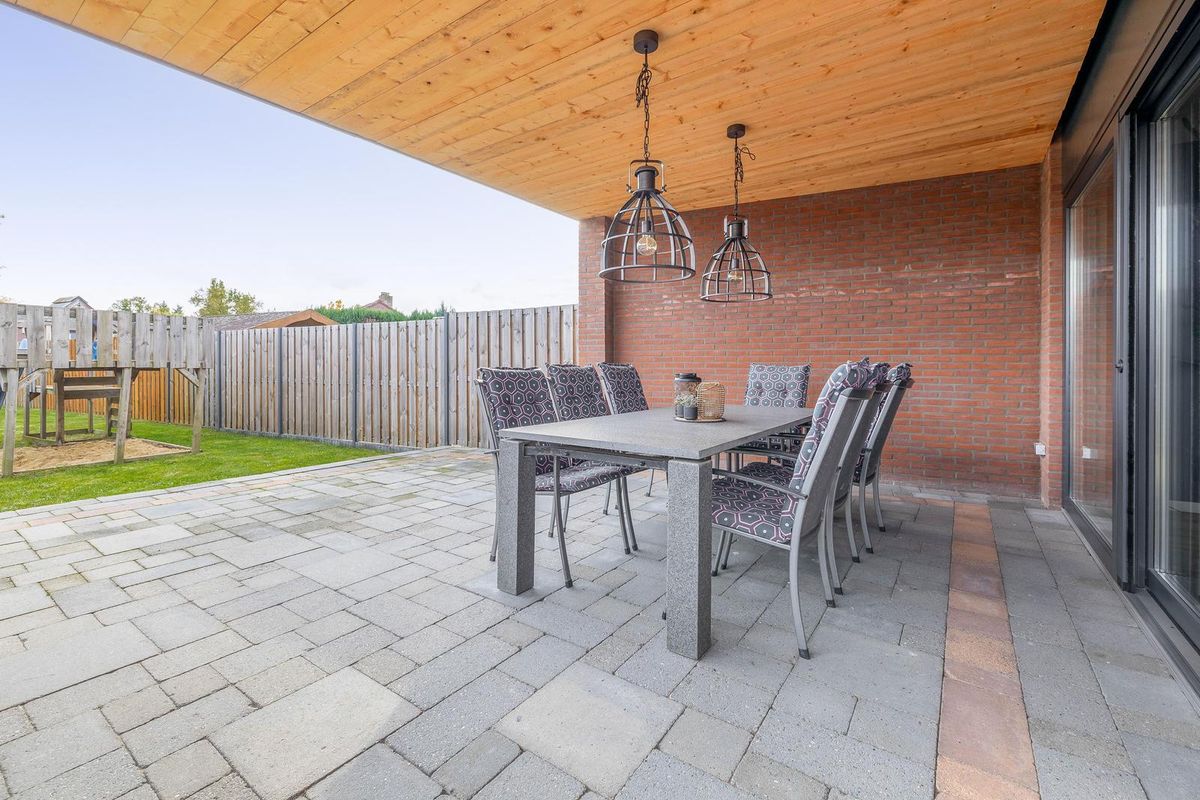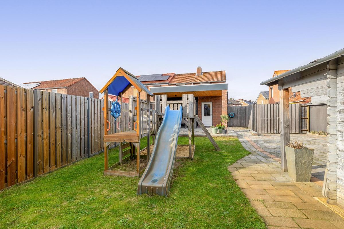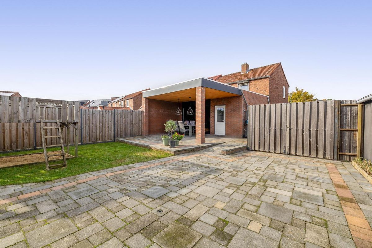 De achtertuin is zeer diep en volledig omheind. Vanuit de eigen oprit biedt een brede poort vrije toegang tot de tuin. Onder de overkapping (2024) is elektra aanwezig. Tevens is er een stroompunt voor eventuele heaters.