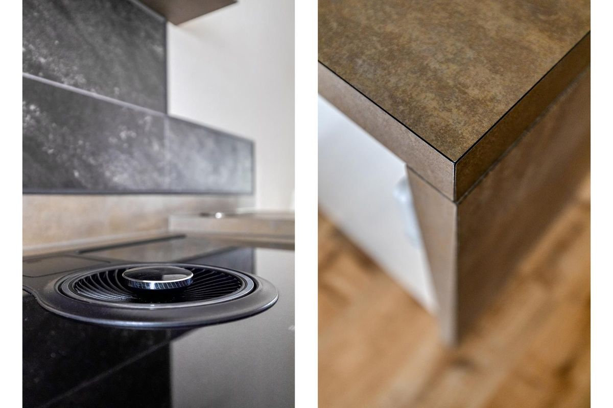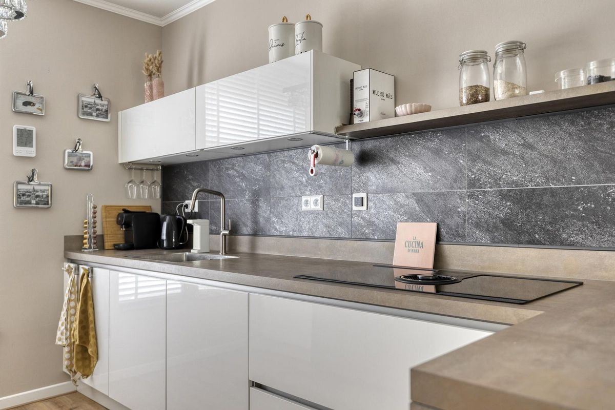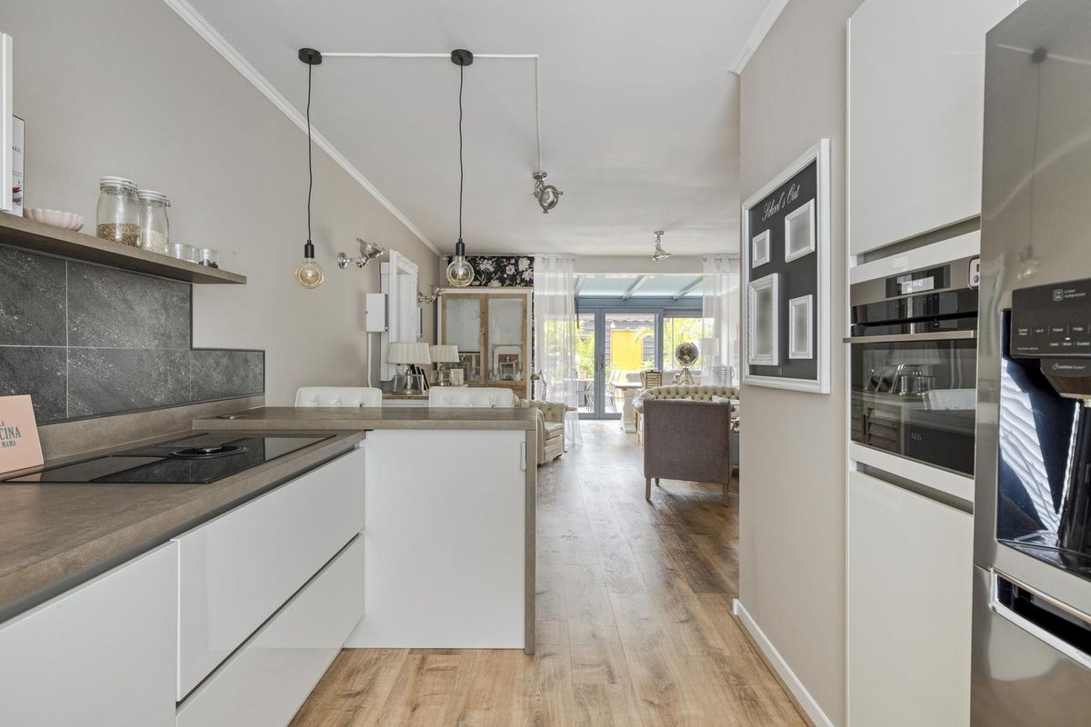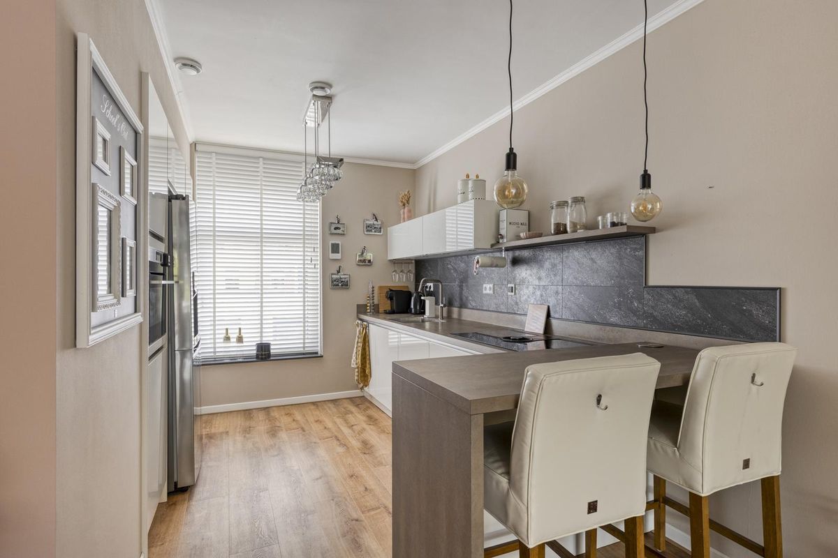 Aan de voorzijde ligt de luxe open keuken welke onder andere bestaat uit een inductie kookplaat met downdraftafzuiging, combimagnetron, koffiemachine, koel-/vriescombinatie en een vaatwasmachine. Ook is er een bar bij de keuken waar het heerlijk zitten is om tijdens het koken de dag door te praten.