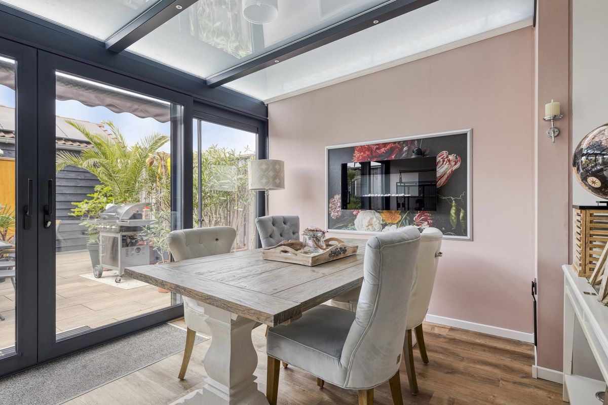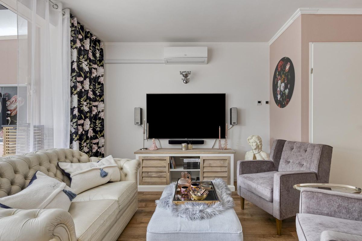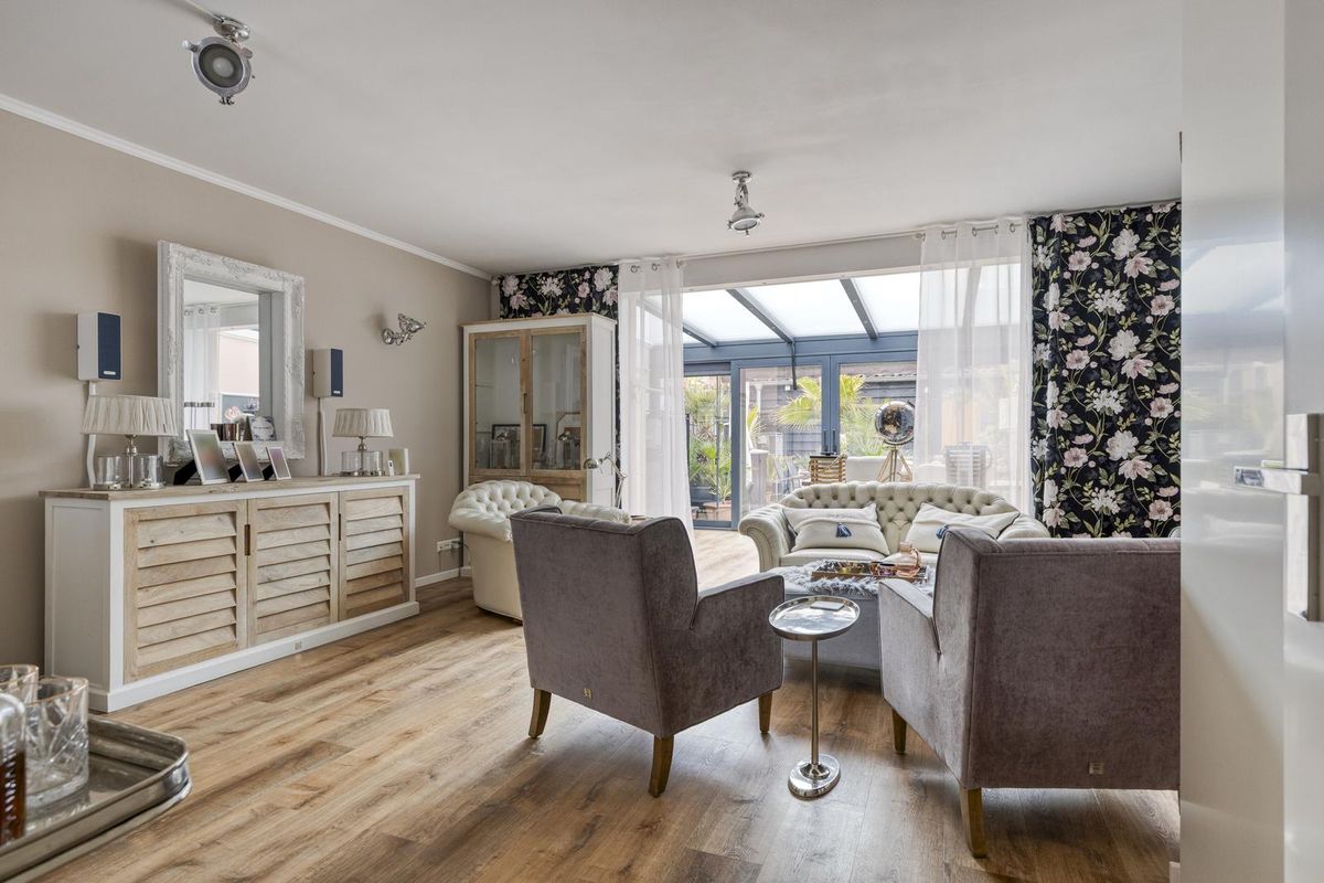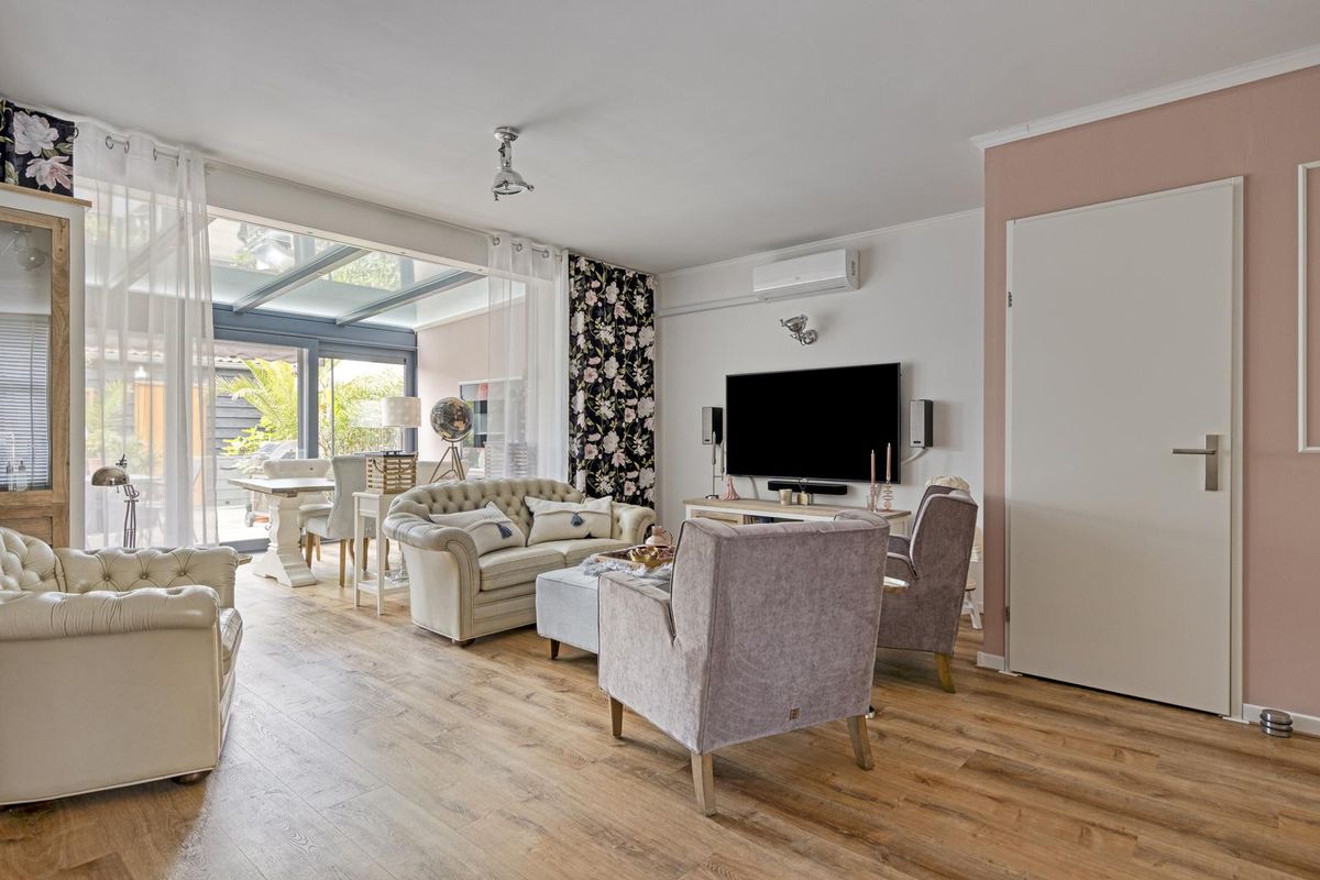 Vanuit hal nemen wij u mee naar de royale, tuingerichte living van circa 39m². Vanwege de aangebouwde en tevens onderheide tuinkamer is de living ruim van opzet en geniet u hier van veel natuurlijk licht. De tuinkamer is voorzien van een schuifpui en een elektrisch automatisch zonnescherm. Verder zorgt de airconditioning voor een heerlijk koele woonruimte op warme zomerse dagen.