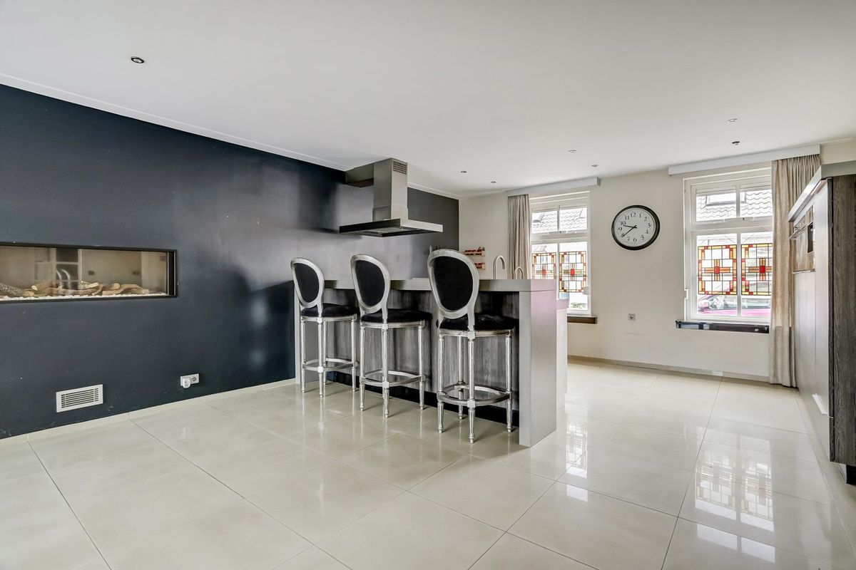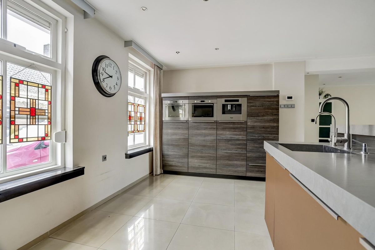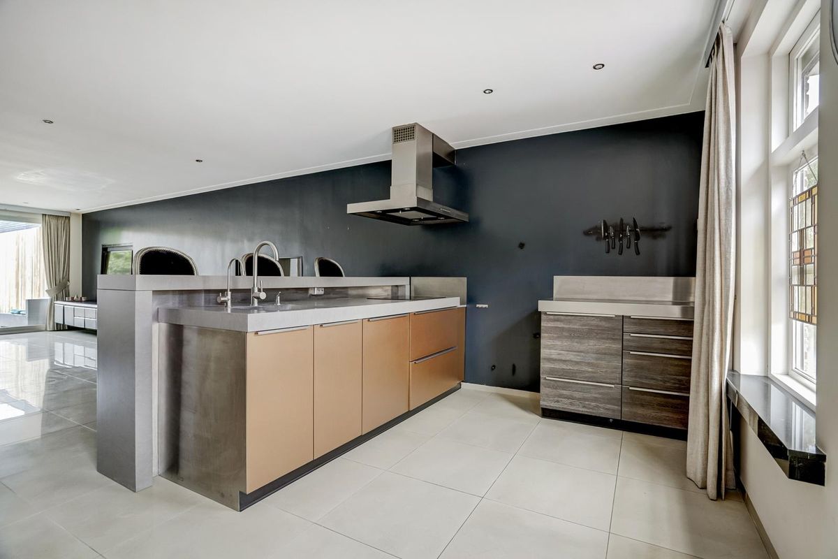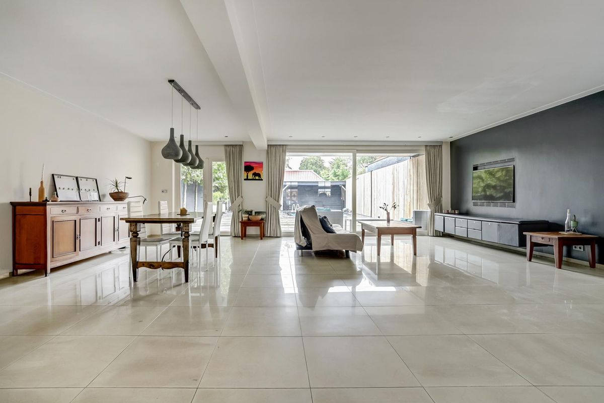 De zeer royale woonkamer van ca. 100 m² is een plek waar het hele gezin samenkomt. Dankzij de grote ramen valt er veel daglicht binnen en heb je een fijn uitzicht op de tuin. De open keuken is modern en compleet ingericht – de ideale plek om samen te koken en te eten.