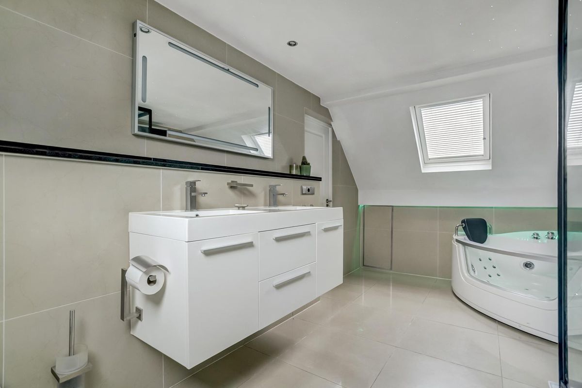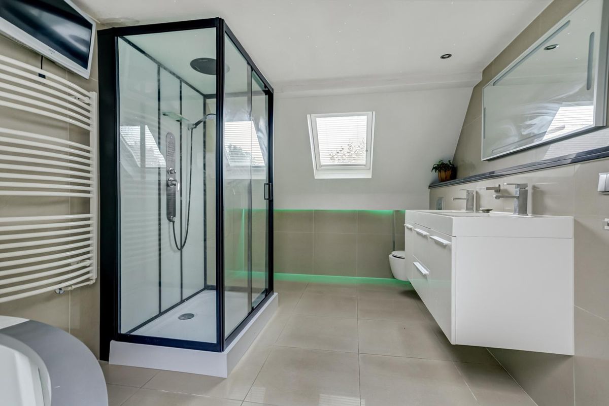 Op de eerste verdieping vind je drie (wederom ook weer zeer ruim te noemen) slaapkamers en een aparte waskamer – super praktisch voor het gezinsleven. Een stijlvolle badkamer die aanvoelt als een privé-spa, met alles wat je nodig hebt voor een ontspannen start van de dag. Alle ramen zijn voorzien van rolluiken. Dit is fantastisch slapen, heerlijk donker!