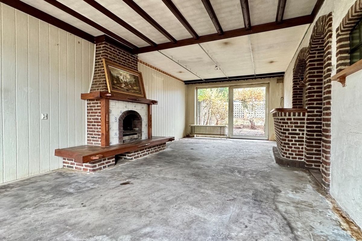- Ruime doorzon-woonkamer (ca. 4.07 x 8.52m) met open haard en schuifpui naar het terras.