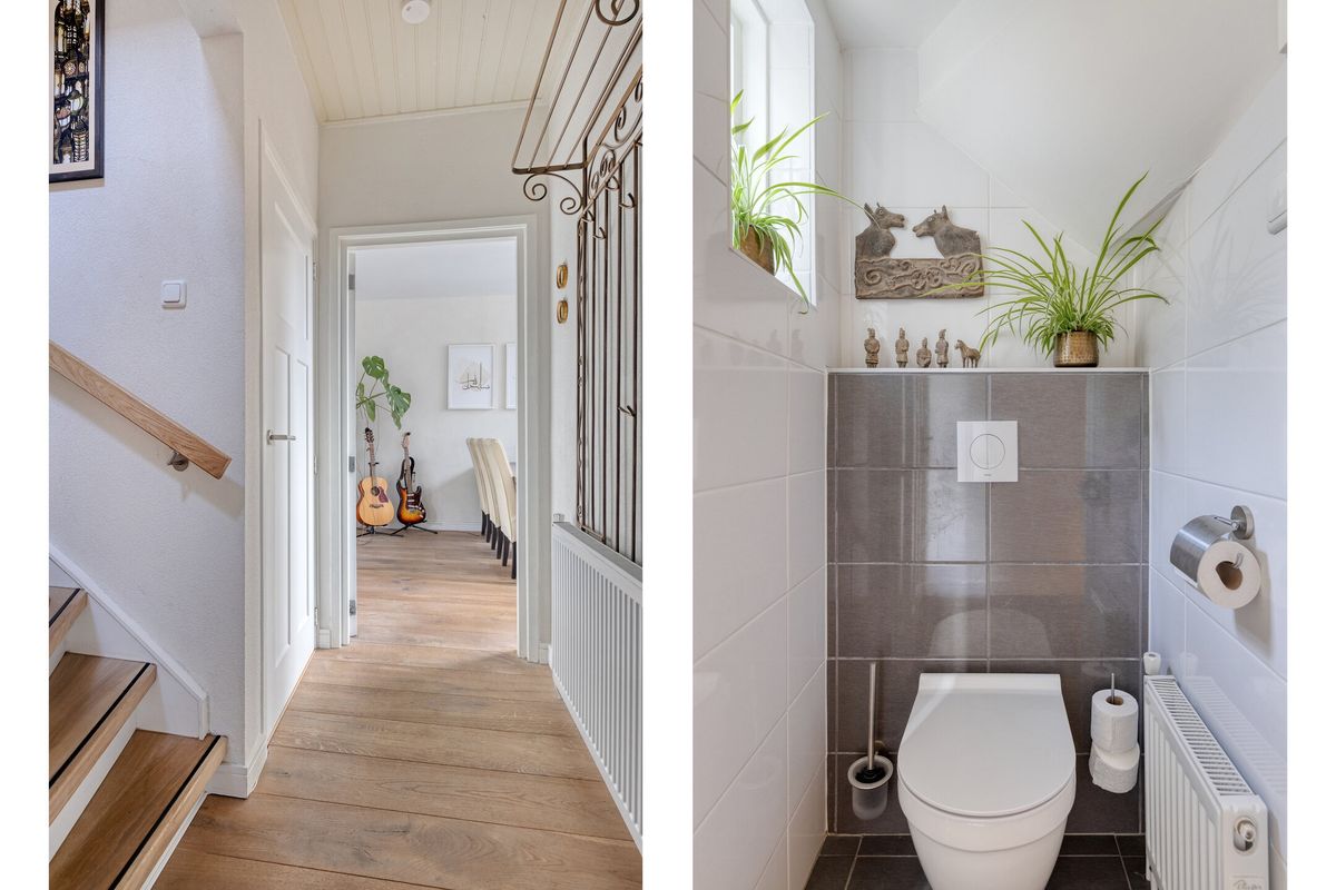 De begane grondvloer is afgewerkt met eiken vloerdelen.