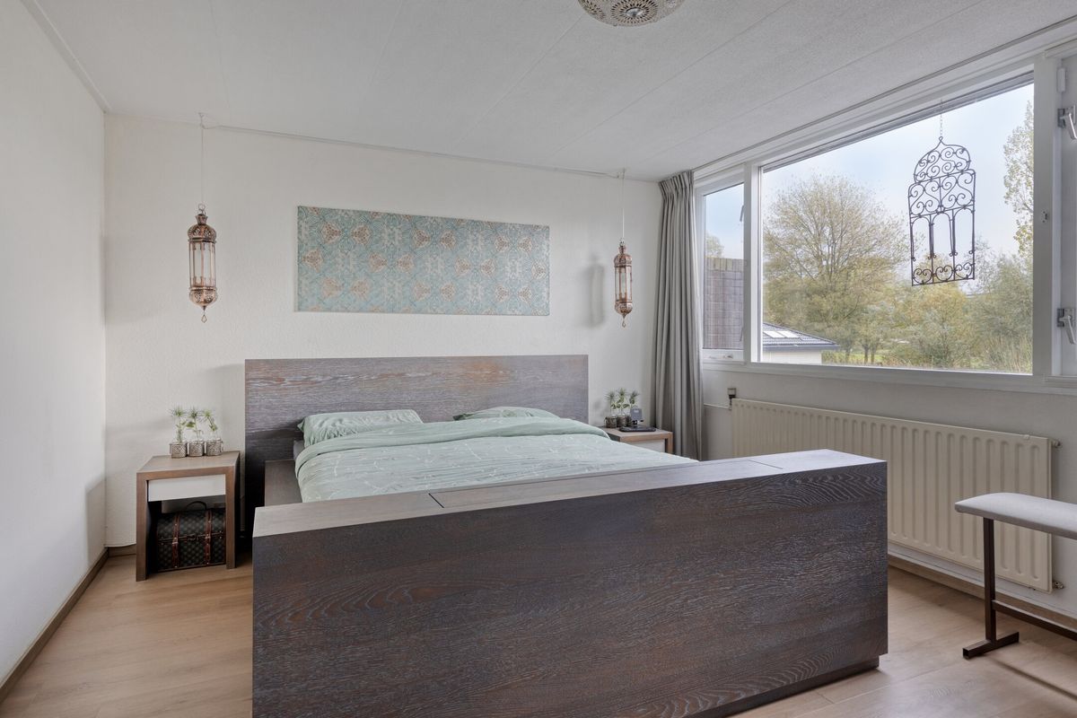 Slaapkamer 1, een royale kamer gelegen aan de achterzijde met ook hier een prachtige uitzicht op de Ringvaart en voorzien van airconditioning.