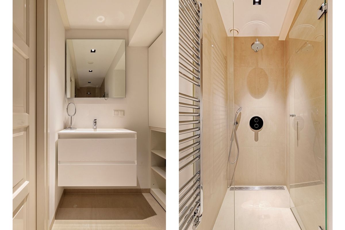 Via de hal naar de slaapkamer kom je langs het separate toilet met fontein. De slaapkamer beschikt over handige inbouwkasten en biedt toegang tot de badkamer, voorzien van een inloopdouche, wastafelmeubel en aansluiting voor de wasmachine.