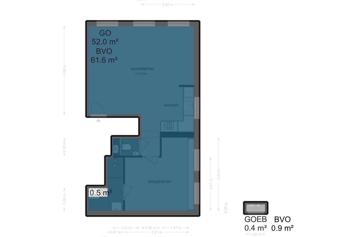 Het woonoppervlak is opgemeten conform meetinstructies gebruikmakende van de NEN2580. De Meetinstructie is bedoeld om een meer eenduidige manier van meten toe te passen voor het geven van een indicatie van de gebruiksoppervlakte. De Meetinstructie sluit verschillen in meetuitkomsten niet volledig uit, door bijvoorbeeld interpretatieverschillen, afrondingen of beperkingen bij het uitvoeren van de meting. Alle opgegeven maten en oppervlaktes zijn derhalve indicatief.