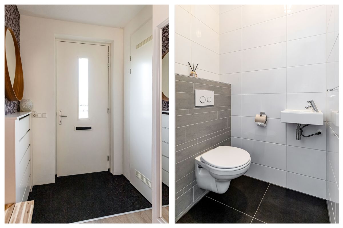 Bij binnenkomst in de woning voelt u direct hoeveel ruimte deze woning te bieden heeft. De ruime hal leidt u naar de verschillende vertrekken, te weten: de meterkast, toilet, trapkast, garage en woonkamer. De grote raampartijen op de begane grond zorgen voor een overvloed aan natuurlijk licht. De woonkamer is een ware eyecatcher. Met zijn royale afmetingen is dit de ideale plek om met uw gezin te ontspannen of vrienden te ontvangen. De open indeling maakt het sociale aspect van het leven nog aangenamer.