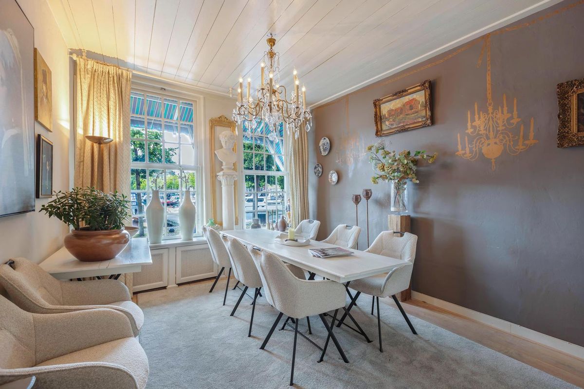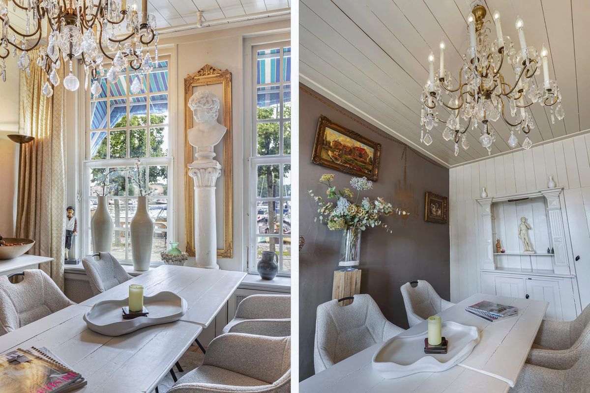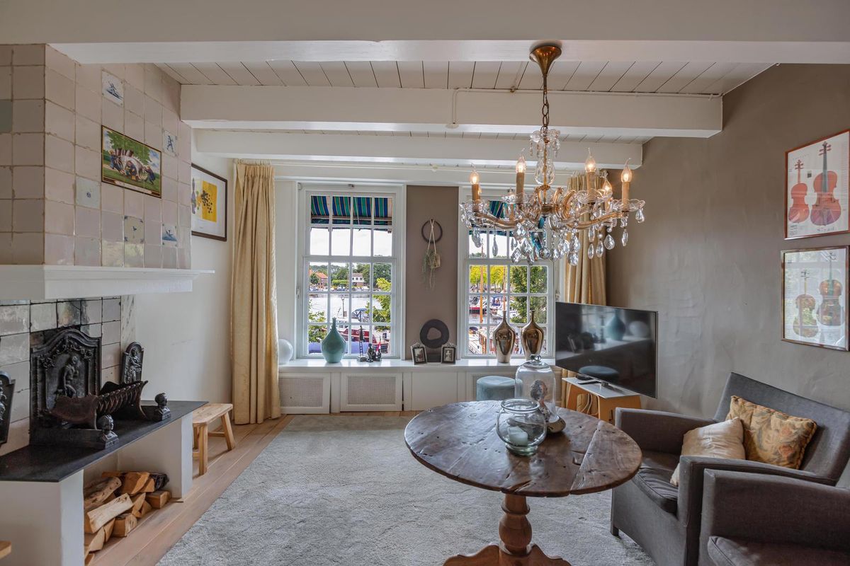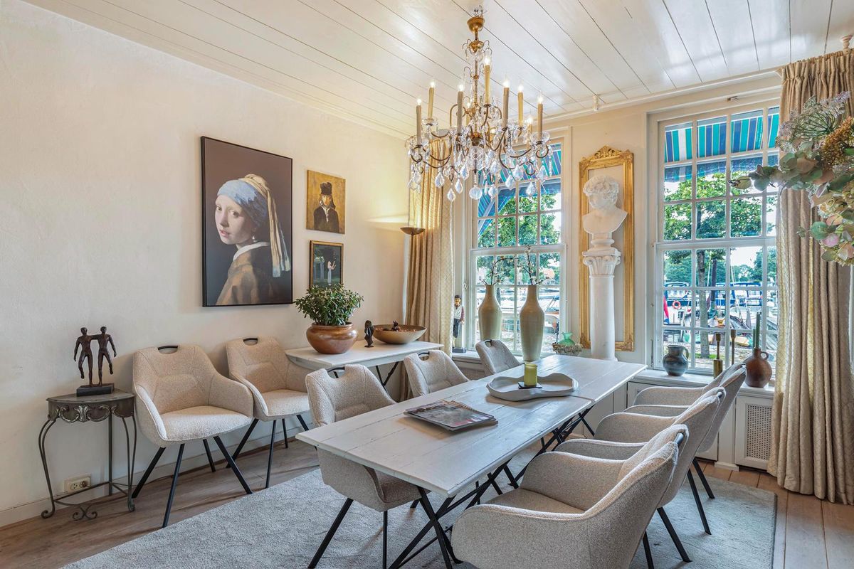 De entree van de woning bevindt zich centraal. Aan de rechterhand vindt u aan de voorzijde de woonkamer, die nu is ingedeeld als eetkamer met uitzicht over de haven. Aan de andere zijde van de entree bevindt zich de prachtige landelijke, maar vooral luxe keuken. Deze is voorzien van een Quooker, authentieke tegels, vaatwasser en ingebouwde afzuigkap. Een fijne ruimte voor een ontspannen kopje koffie of ontbijt met de krant.