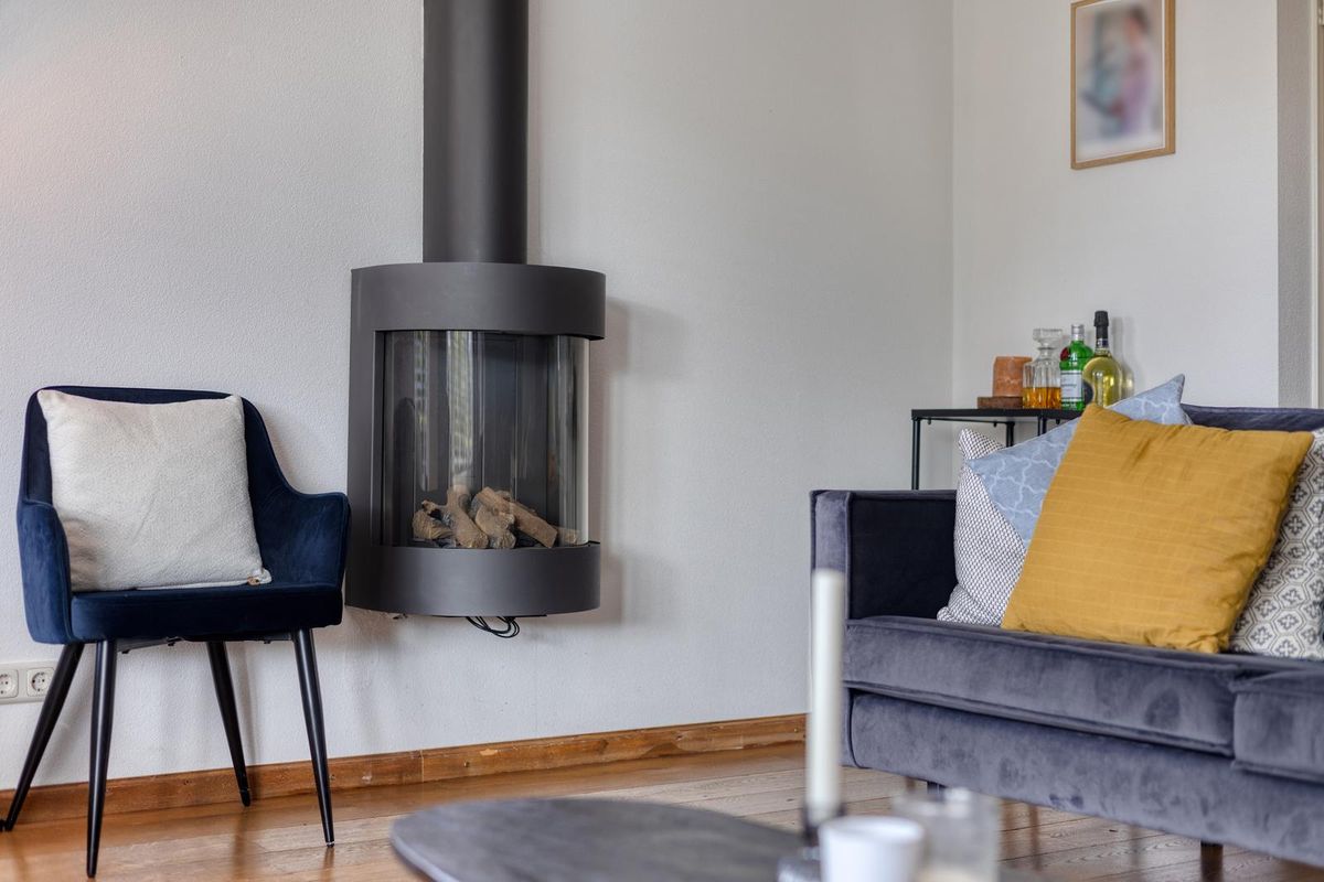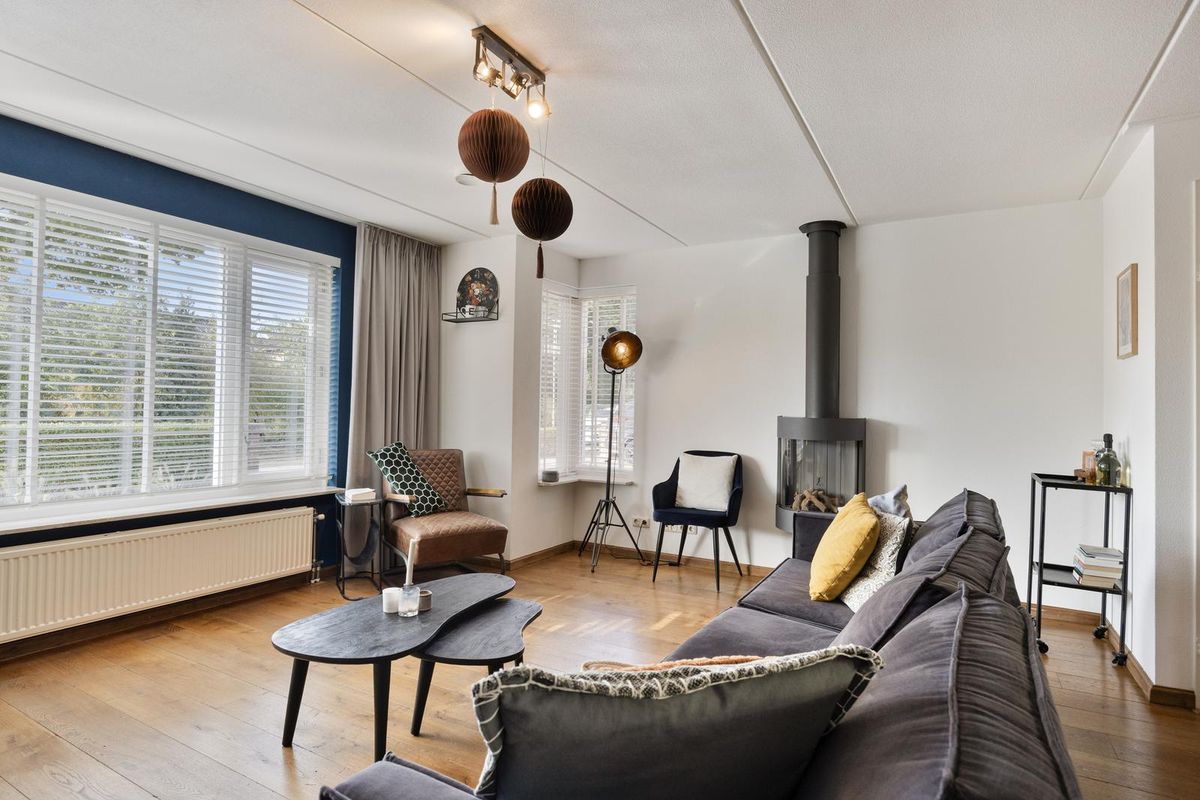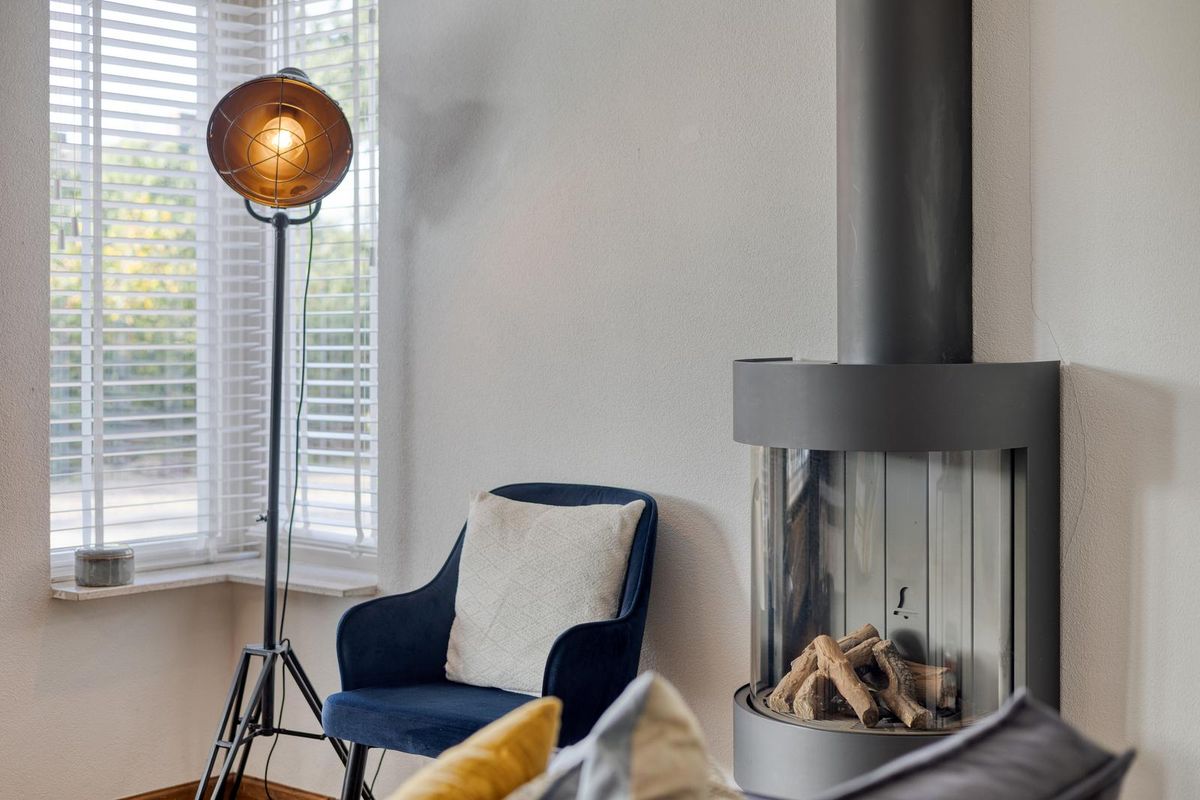 - Woonkamer met veel lichtinval en een sfeervolle gaskachel