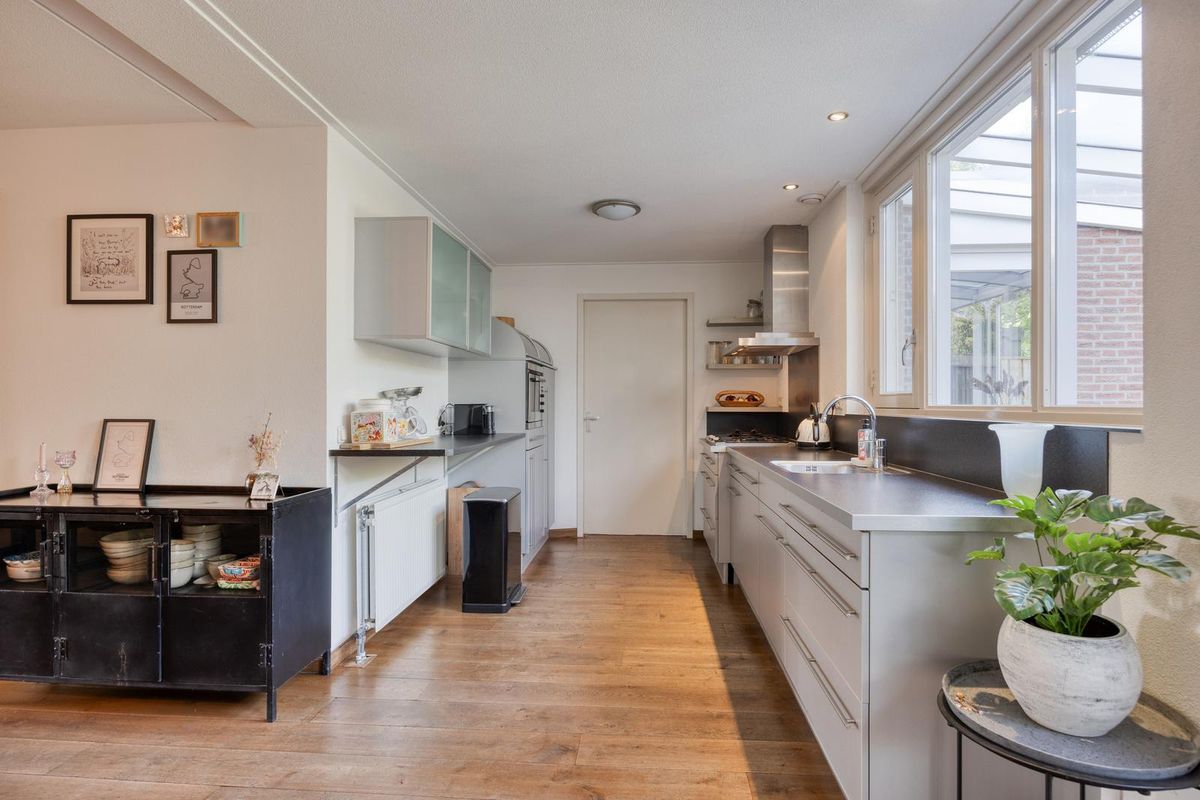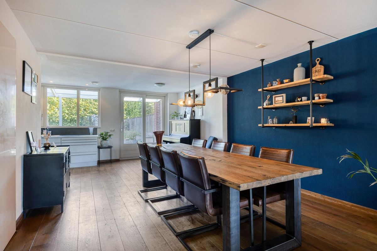 Bij binnenkomst word je ontvangen in de hal met toilet, meterkast en trapopgang naar de eerste verdieping. De royale woonkamer straalt warmte uit dankzij de grote ramen die zorgen voor een overvloed aan daglicht en de sfeervolle gashaard die uitnodigt tot ontspannen avonden. Vanuit de woonkamer is er toegang tot de praktische trappenkast en de open keuken, die is voorzien van diverse inbouwapparatuur zoals een 5-pits gasfornuis met afzuigkap, combimagnetron en koel- vriescombinatie. Via de schuifpui stap je zo de achtertuin in. Aangrenzend aan de keuken bevindt zich de bijkeuken met inbouwkast, fontein en de witgoedaansluitingen. De aangebouwde garage beschikt over openslaande deuren naar de oprit en is tevens bereikbaar vanuit de hal en de bijkeuken. De garage beschikt over verwarming en elektra en biedt ruimte voor één auto.