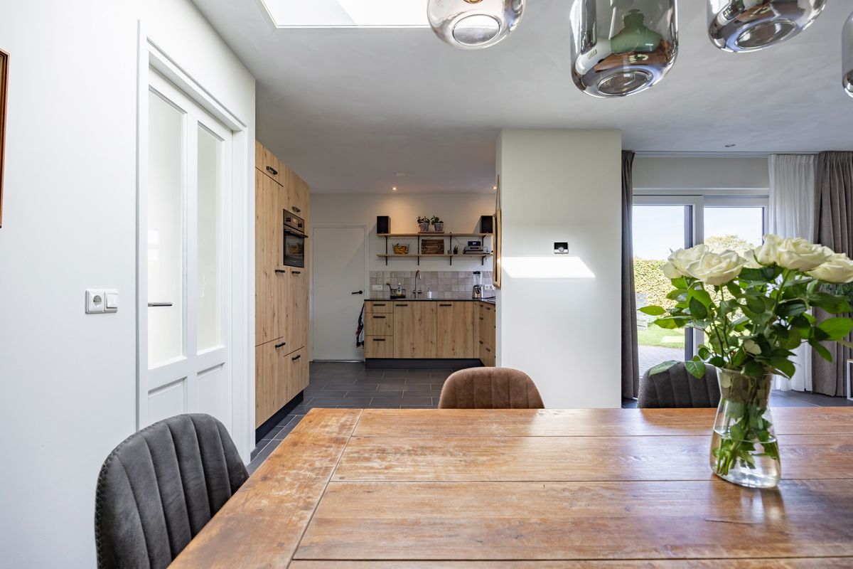 Aangrenzend aan de keuken vind je de ruime, lichte woonkamer. Het is zo’n plek waar je gezellig samenkomt – of je nu met z’n tweeën bent of met het hele gezin. Dankzij de grote schuifpui haal je het buitenleven naar binnen en loop je zo het terras op. Hier geniet je van zwoele zomeravonden, een kopje koffie in de ochtendzon of een gezellige borrel met vrienden.