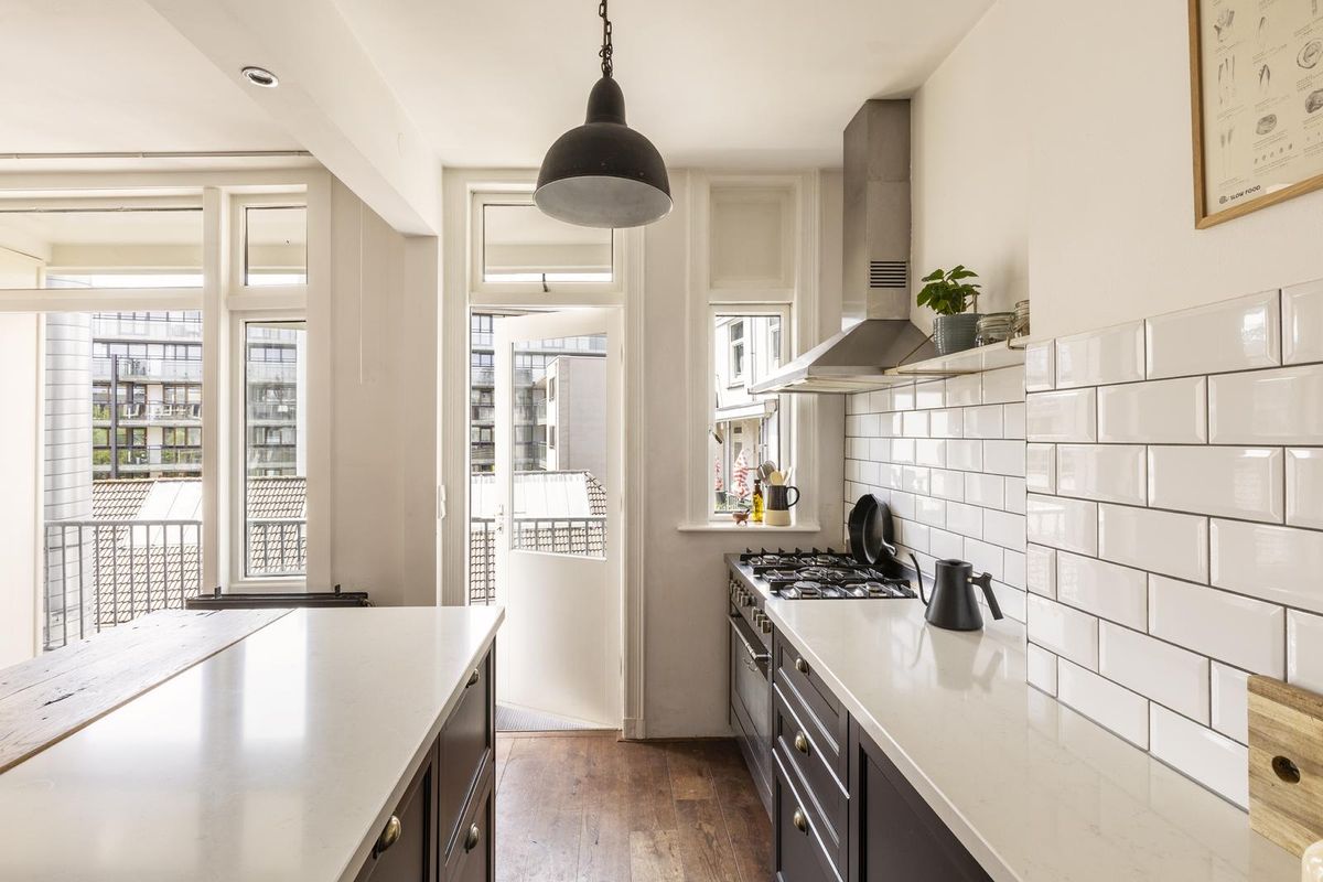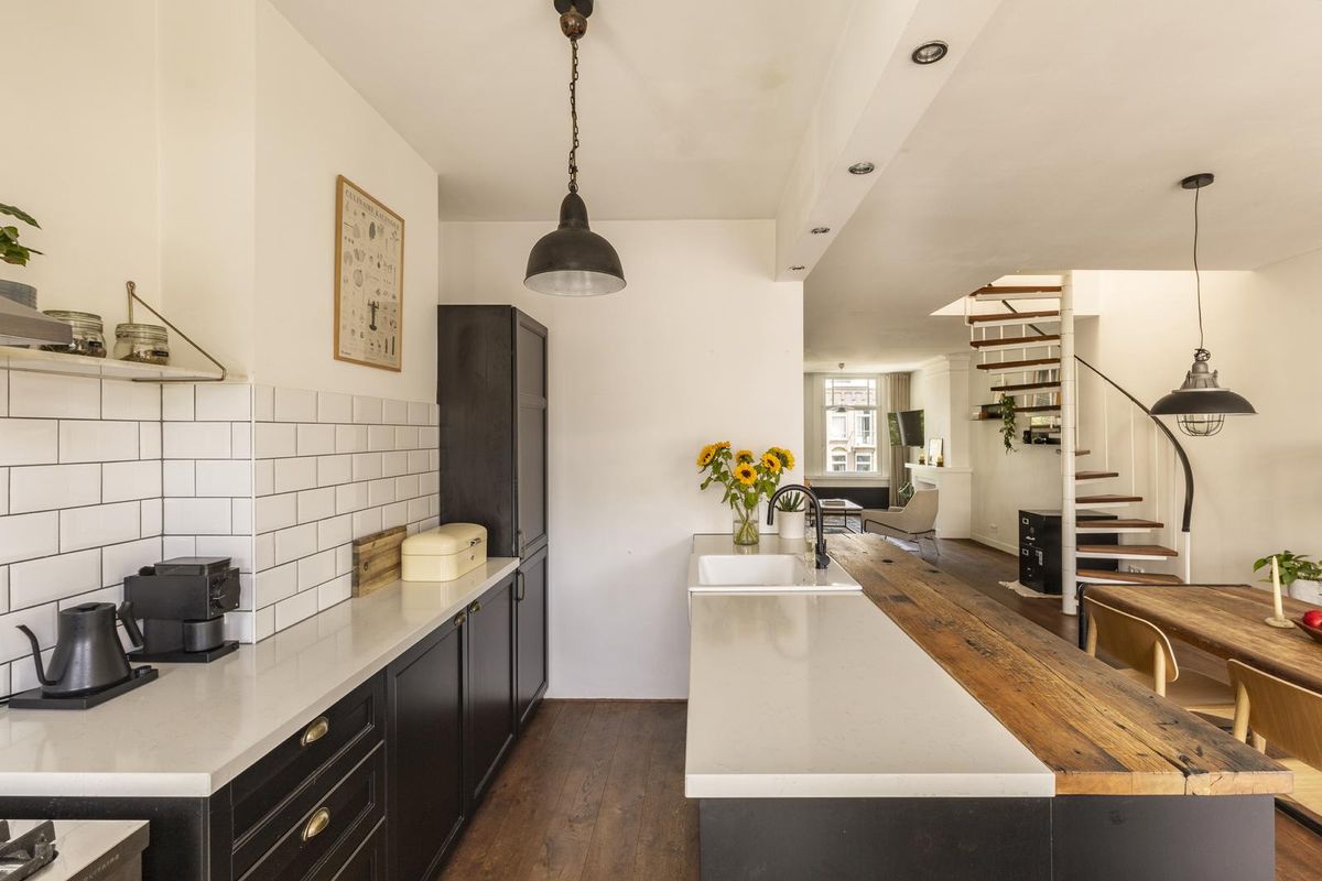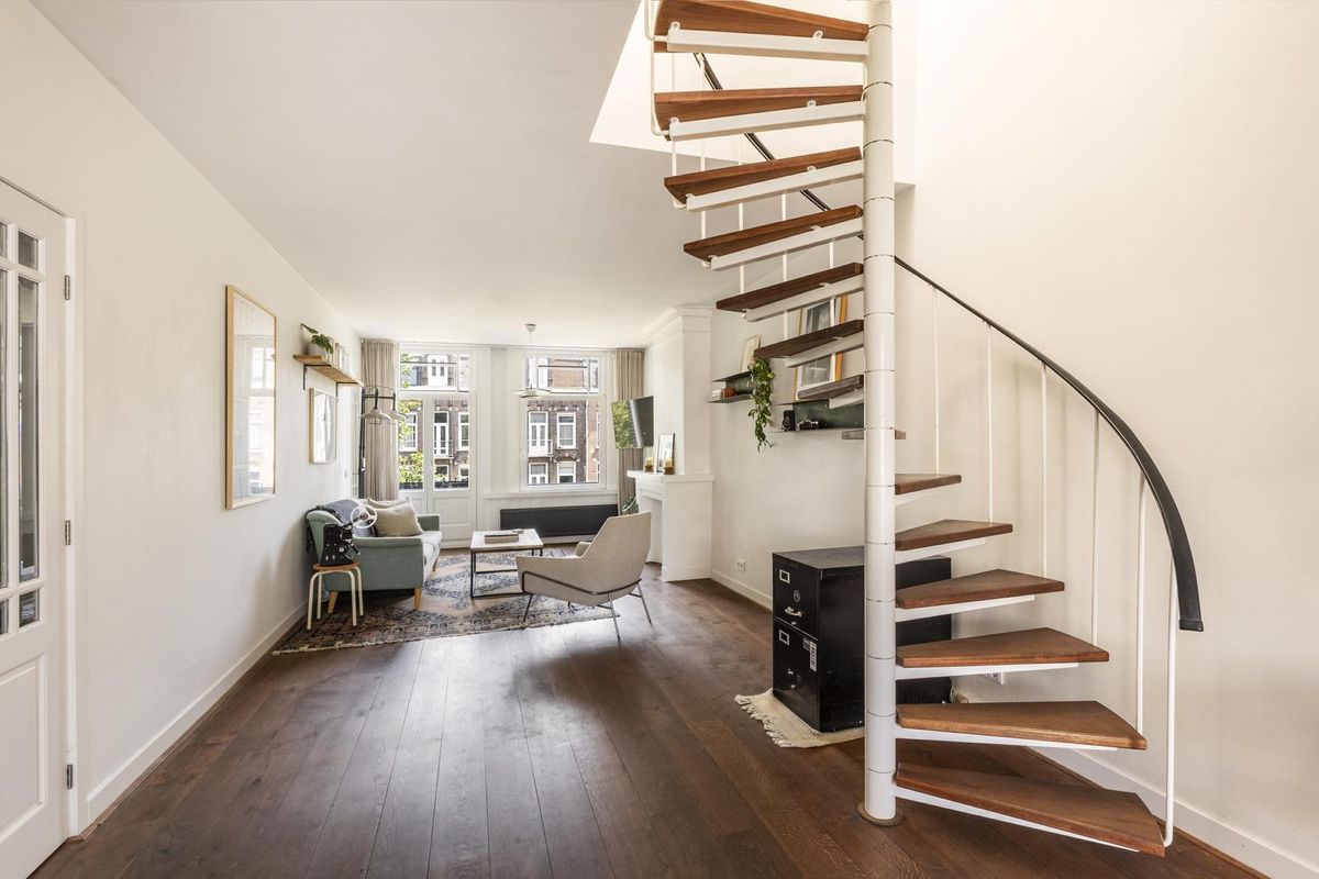 Wij bieden u graag deze ruime maisonnette van 97 m² aan in een goed onderhouden gebouw, centraal gelegen aan de Bilderdijkstraat in Amsterdam Oud-West. Het appartement is voorzien van een prachtige houten vloer, een keuken met spoeleiland, drie slaapkamers, een moderne badkamer en een zonnig dakterras. Gelegen op de derde en vierde verdieping geniet het appartement van veel natuurlijk licht door de grote HR++ ramen. Een heerlijke ochtendzon verwelkomt u in de woonkamer en in de middag kunt u genieten van de avondzon op het balkon grenzend aan de keuken.