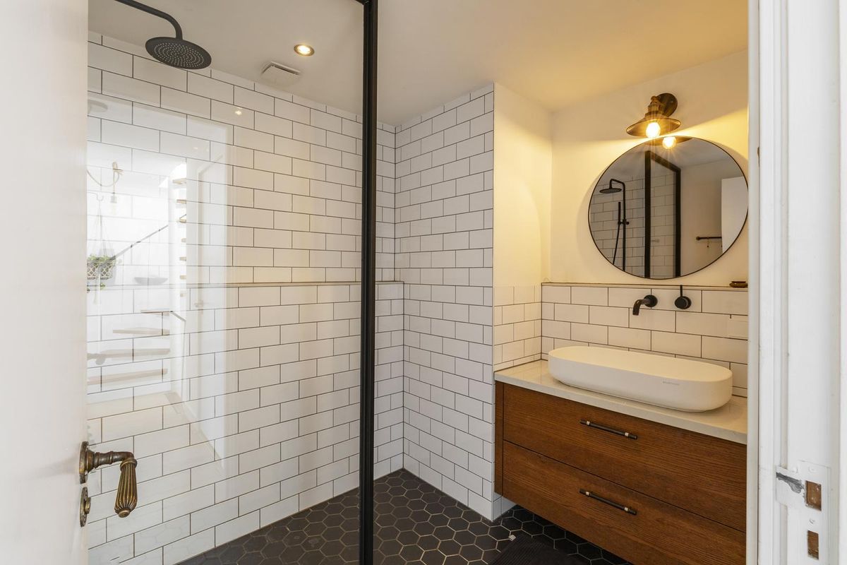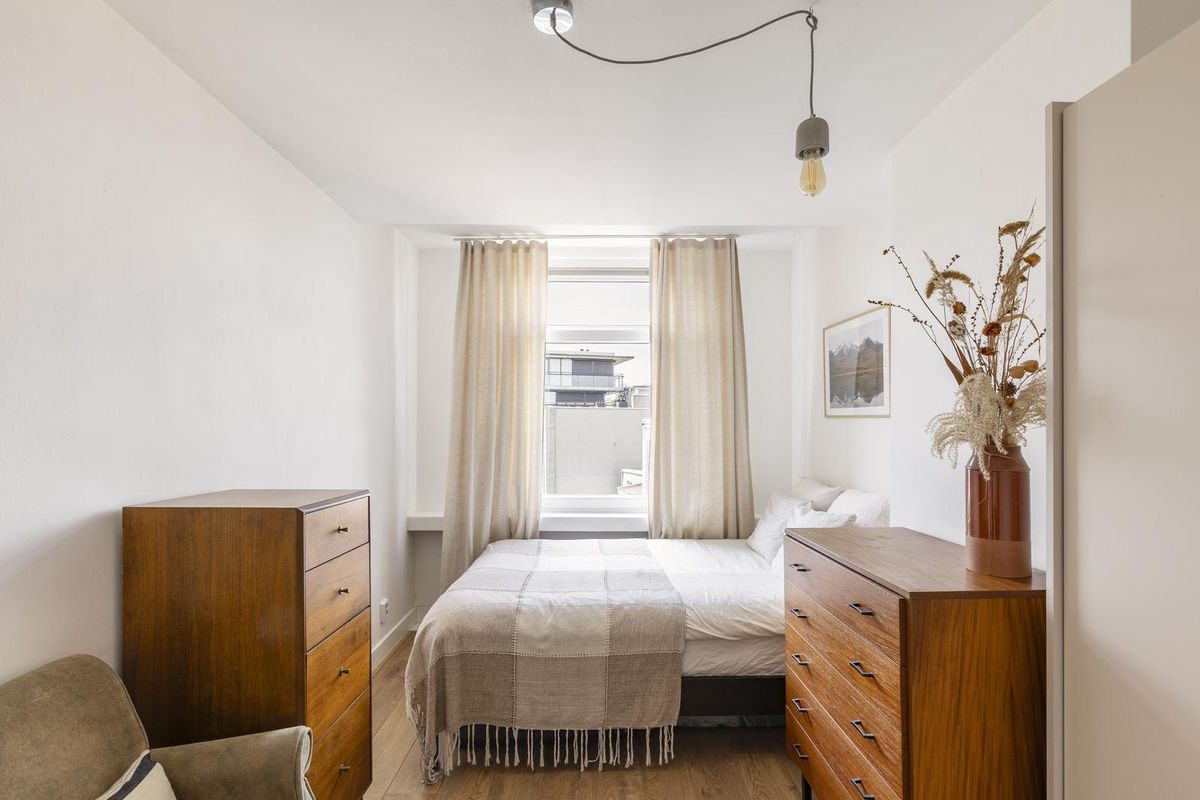 Via de wenteltrap bereikt u de overloop op de vierde verdieping. Op deze verdieping bevinden zich twee ruime slaapkamers van circa 13 en 11 m², een moderne badkamer met een grote inloopdouche en wastafel, en een apart toilet met een kleine wastafel.