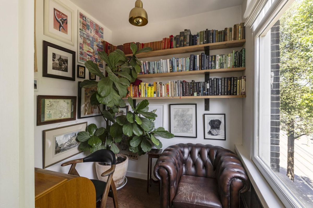 Centraal in de kamer bevindt zich de interne trap naar de vierde verdieping.