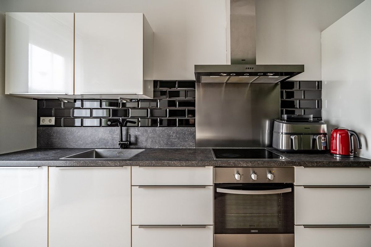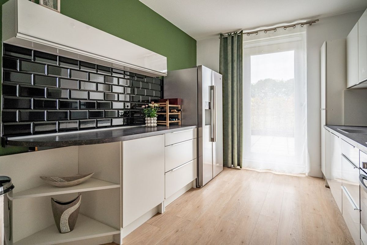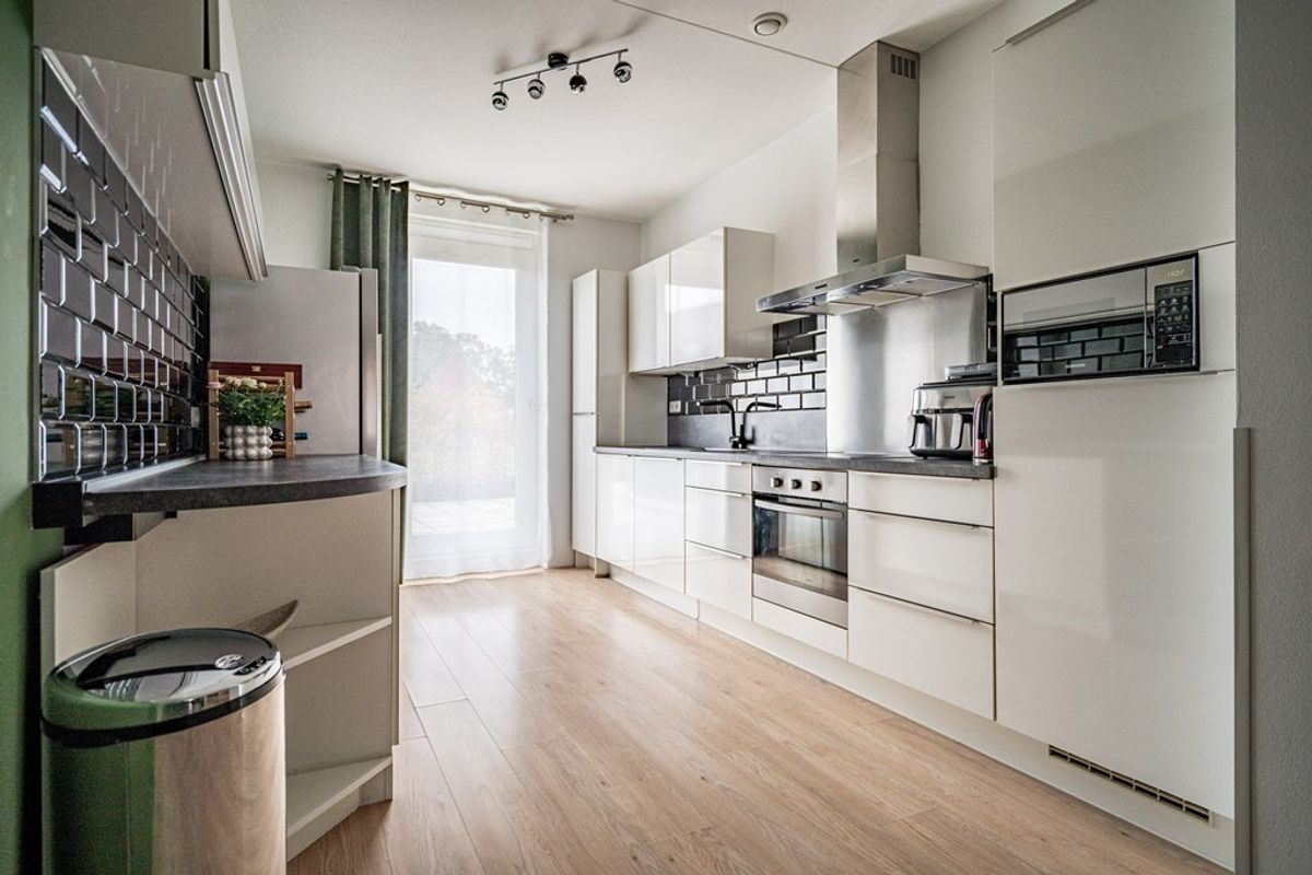 De open keuken zorgt dat u contact houdt met de woonkamer. Uitgevoerd met twee rechte keukenblokken.