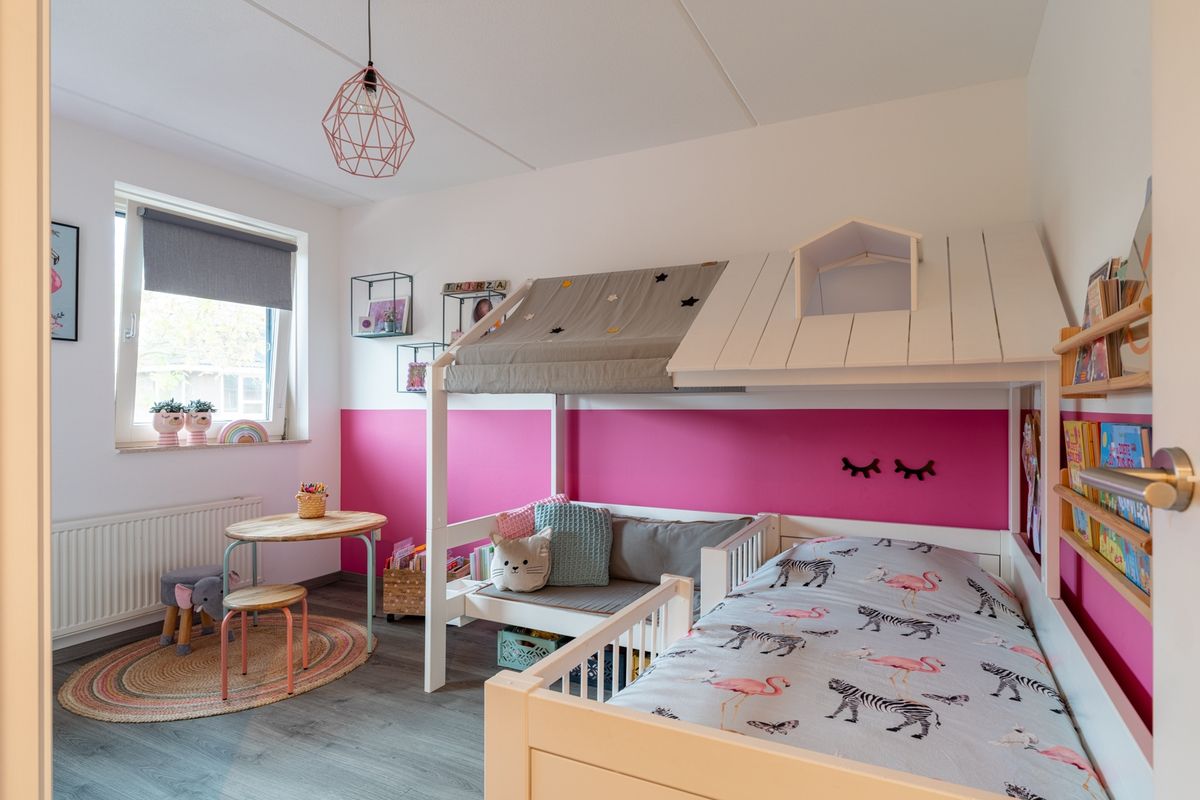 De slaapverdiepingen bieden volop ruimte. Op de eerste verdieping vind je drie grote slaapkamers én een prachtige, vernieuwde badkamer met luxe afwerking: een ligbad, inloopdouche, zwevend toilet en een strak wastafelmeubel. De zolder is verrassend ruim met een voorzolder, nóg twee slaapkamers én een aparte ruimte voor de wasmachine en droger. Alles is netjes en functioneel ingedeeld, met daarbovenop nog een handige bergzolder – perfect voor wat je niet dagelijks nodig hebt.