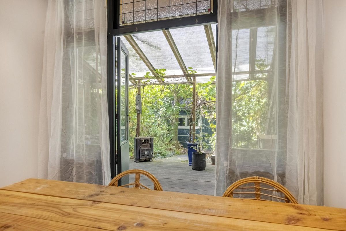 Vanuit de keuken of woonkamer heb je toegang tot de zonnige tuin welke is gelegen op het zuidwesten. De tuin is goed qua formaat en netjes aangelegd. Het eerste deel beschikt over een overkapping, een verlengde van het woongedeelte. Achterin de tuin is de ruime berging te vinden. De berging is volledig geïsoleerd en voorzien van elektra. Ook heeft deze ruimte toegang tot de achtergelegen steeg. Ideaal om met de fiets achterom te komen. Deze ruimte is perfect om te bouwen tot werkruimte of atelier aan huis.
