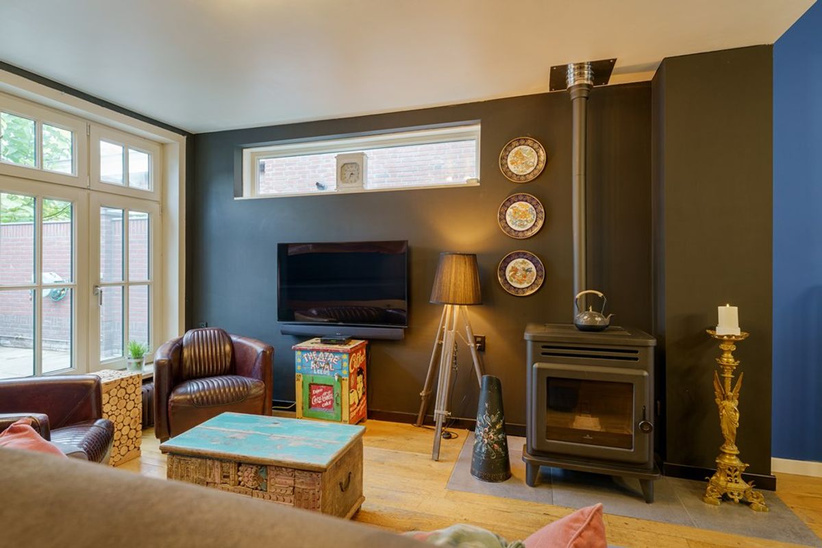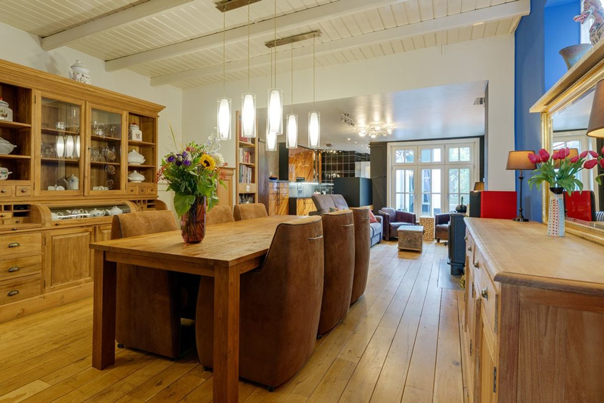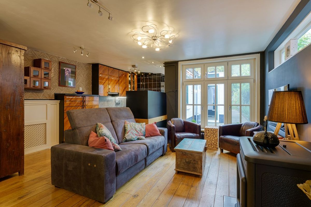 Achter deze ruimte bevindt zich een lichte tuinkamer met een schuifpui naar de tuin. Dankzij de grote raampartijen valt hier veel daglicht binnen een heerlijke plek om te ontspannen.