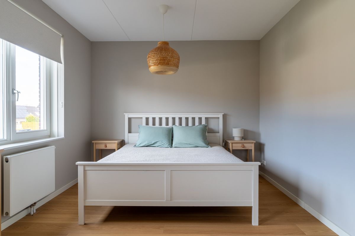 Op de eerste verdieping vind je twee royale slaapkamers – beide echt groot van formaat. De kamer aan de achterzijde is zelfs zó ruim dat je deze eenvoudig kunt opdelen in twee kamers of kunt uitbreiden met een inloopkast. De badkamer sluit volledig aan bij de moderne stijl van de woning: strak, luxe en comfortabel. Met een dubbele inloopdouche, wastafelmeubel en toilet is dit een plek waar je elke dag fris en ontspannen kunt beginnen. De tweede verdieping biedt nóg een grote, veelzijdige kamer — ideaal als derde slaapkamer, werkkamer of logeerkamer.