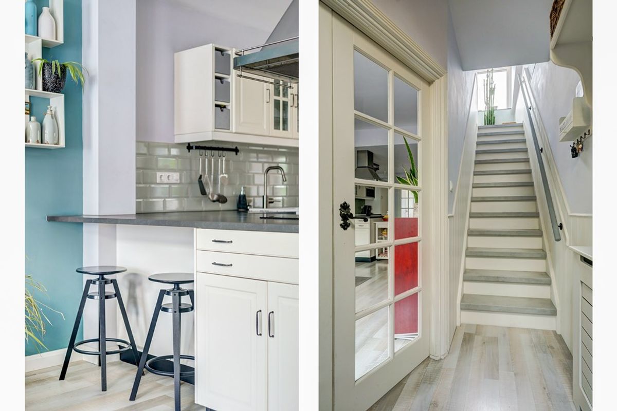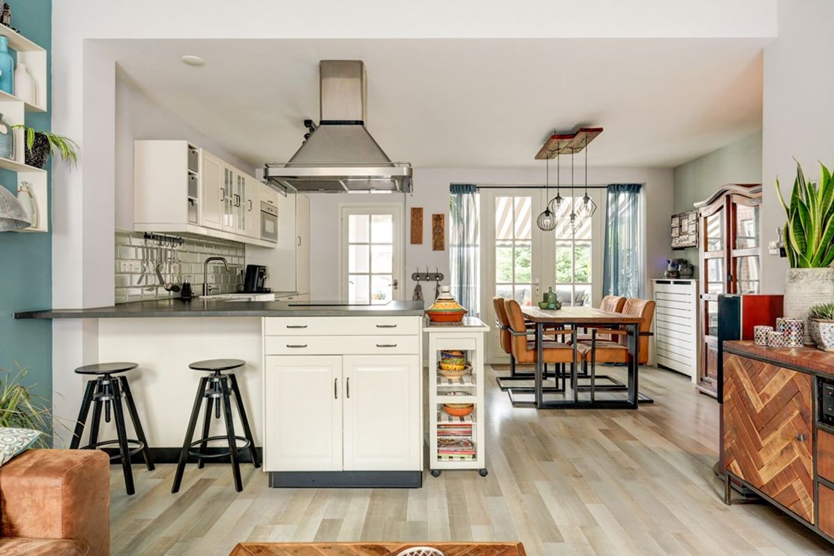 Mijn opdrachtgevers kochten de woning in 2018. De woning had toen al een goede uitstraling, maar binnenshuis moest er echt nog heel veel gebeuren. Dat hebben zij vervolgens grondig en stapsgewijs aangepakt. De grootste investeringen, zoals de keuken en de badkamer, dateren uit 2019. In datzelfde jaar werden ook het platte dak vernieuwd, het balkon vergroot, de meterkast vernieuwd, de zonnepanelen geplaatst en vrijwel alle kozijnen en ramen vervangen door kunststof exemplaren met HR++ beglazing. Ook vloeren en wanden zijn waar nodig aangepakt. Het resultaat mag er zijn: een huis dat karakter en comfort bijzonder knap weet te combineren.