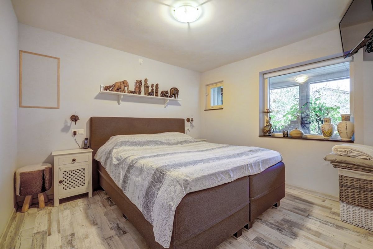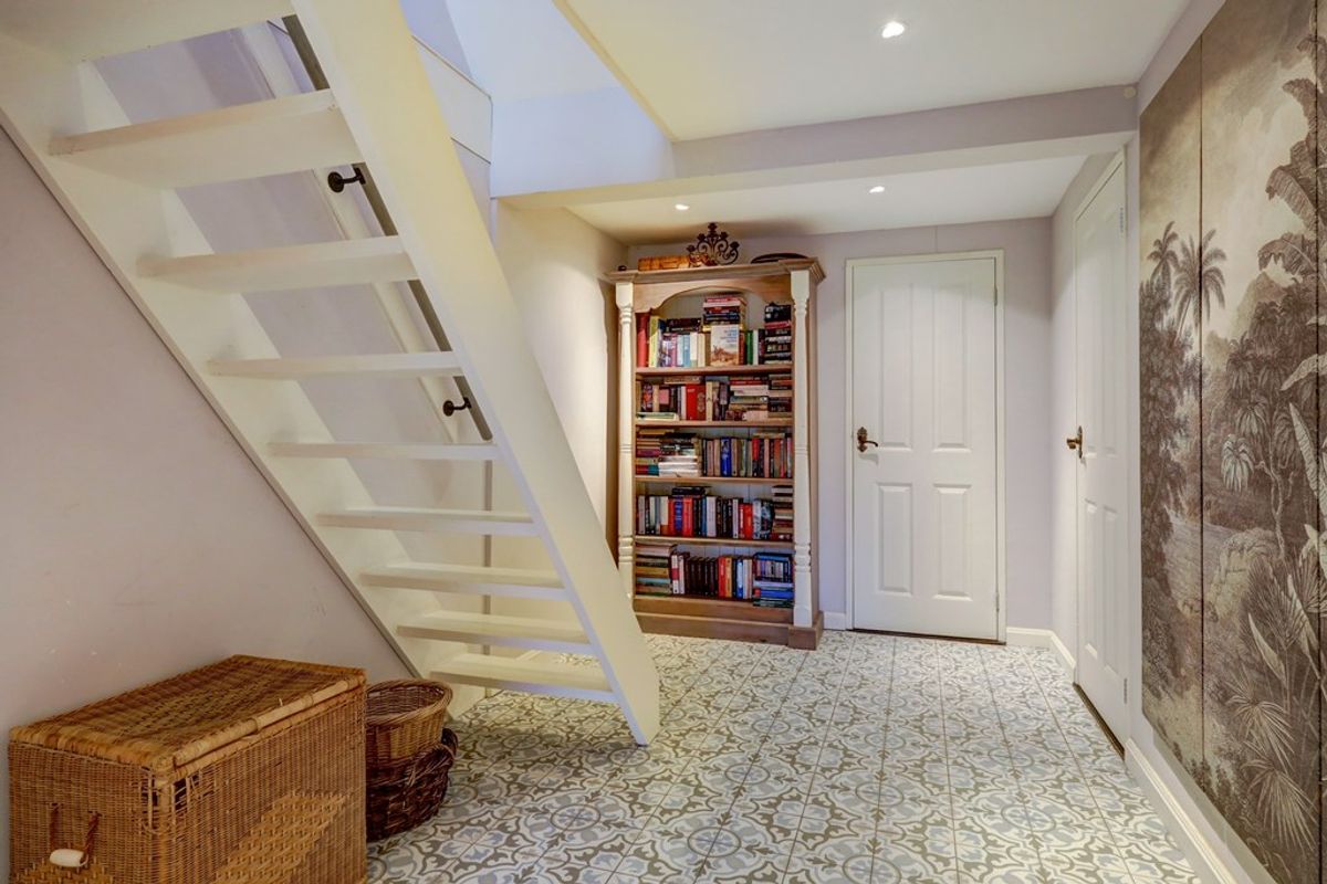 In het souterrain is de indeling als volgt: royale hal met tweede toilet, berging/kelder, loopdeur naar de tuin, wasruimte met aansluitingen ten behoeve van de wasapparatuur en een prima slaapkamer met aansluitend een grote inloopkast. De vloer van het souterrain is voorzien van vloerverwarming en afgewerkt met fraaie, nostalgische vloertegels. Dit is bepaald geen standaard kelderruimte, maar echt een volwaardig onderdeel van het huis.