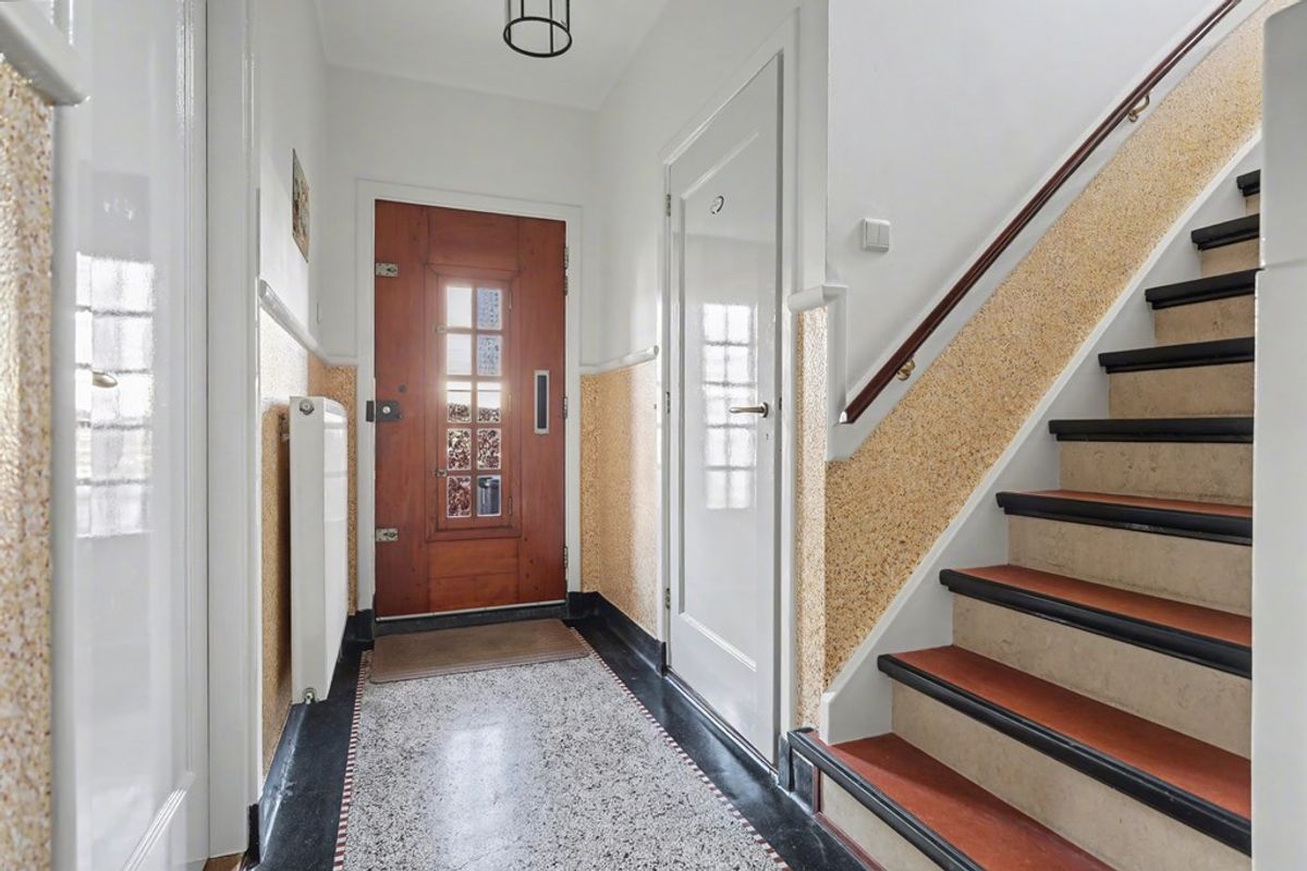 Vanuit de keuken is er een trap naar het souterrain, vanuit de hal een trap naar de verdieping. Het is prachtig om te zien hoe goed de staat nog is van de authentieke paneeldeuren.